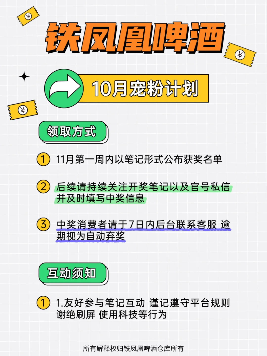 3.10月最后一天12:00 经官方后台数据统计TOP3的宝子将获得当月铁粉奖品:铁凤凰立得柱一箱(包装随机)