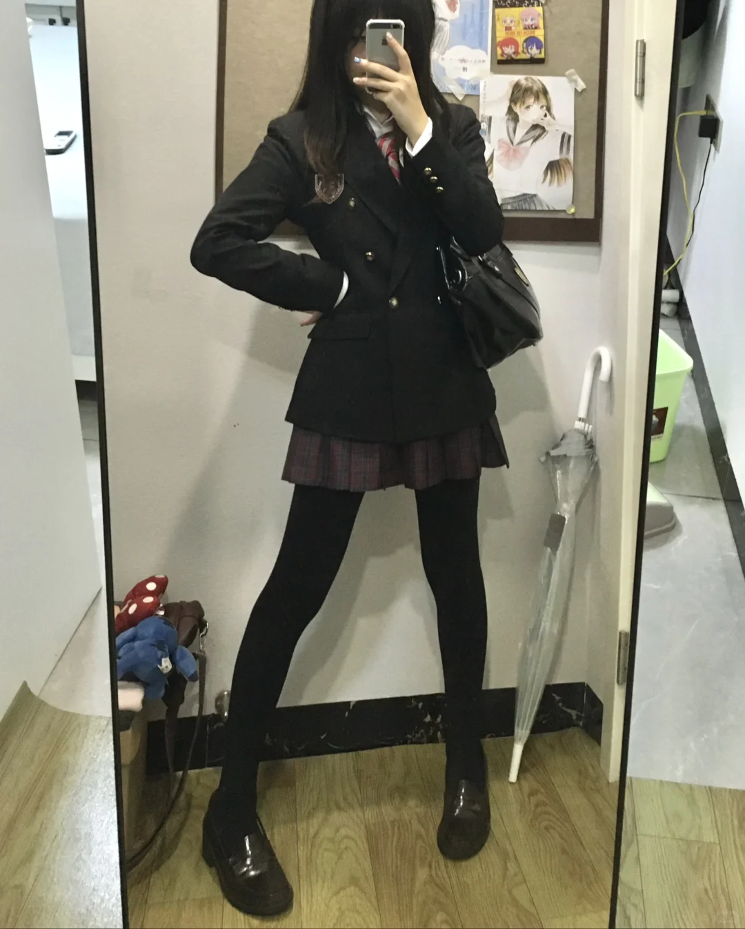 双排扣什么的…收腰什么的…是一件很有萌感的西服!穿上很板正!是优等生…厚黑感觉更是萌上加萌!而且很保暖呢,是适合早秋的一套