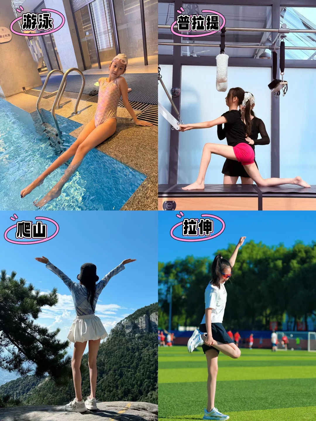 🔵先说运动,女儿是小模特,平时会练普拉提、游泳、街舞——这些运动既能刺激骨骼生长,又能帮她保持匀称线条。