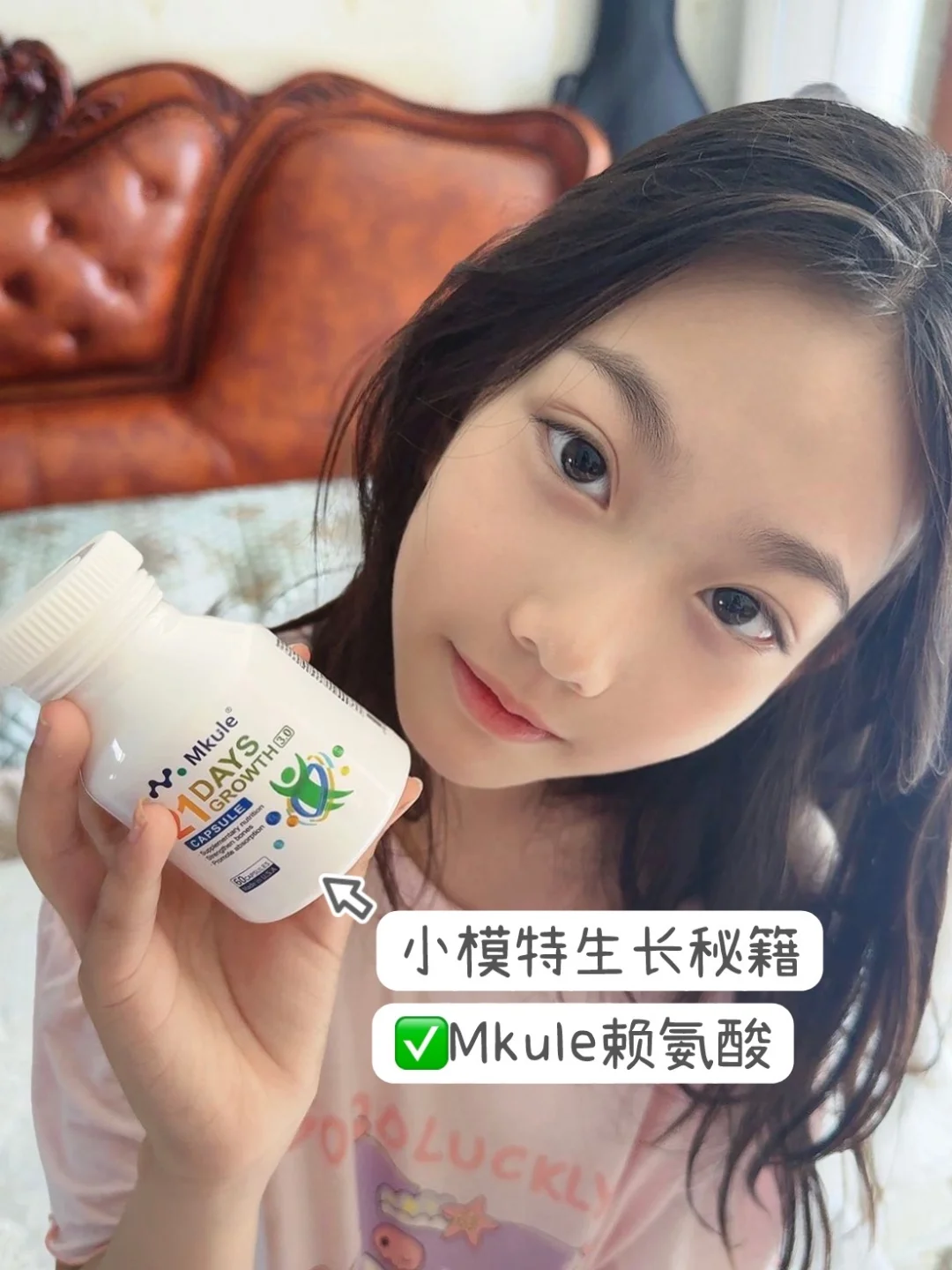 另外我会给她额外补✅Mkule 赖氨酸—— 这是我们的 “小秘密”:它能帮着给骨骼补营养(19种营养素),还能辅助生长激素分泌(高含量400mg赖氨酸),关键是 0 激素、0 添加,天然植物提取,成分安全。不用吃太多食物就能补齐骨骼营养,不再担心吃多发胖。