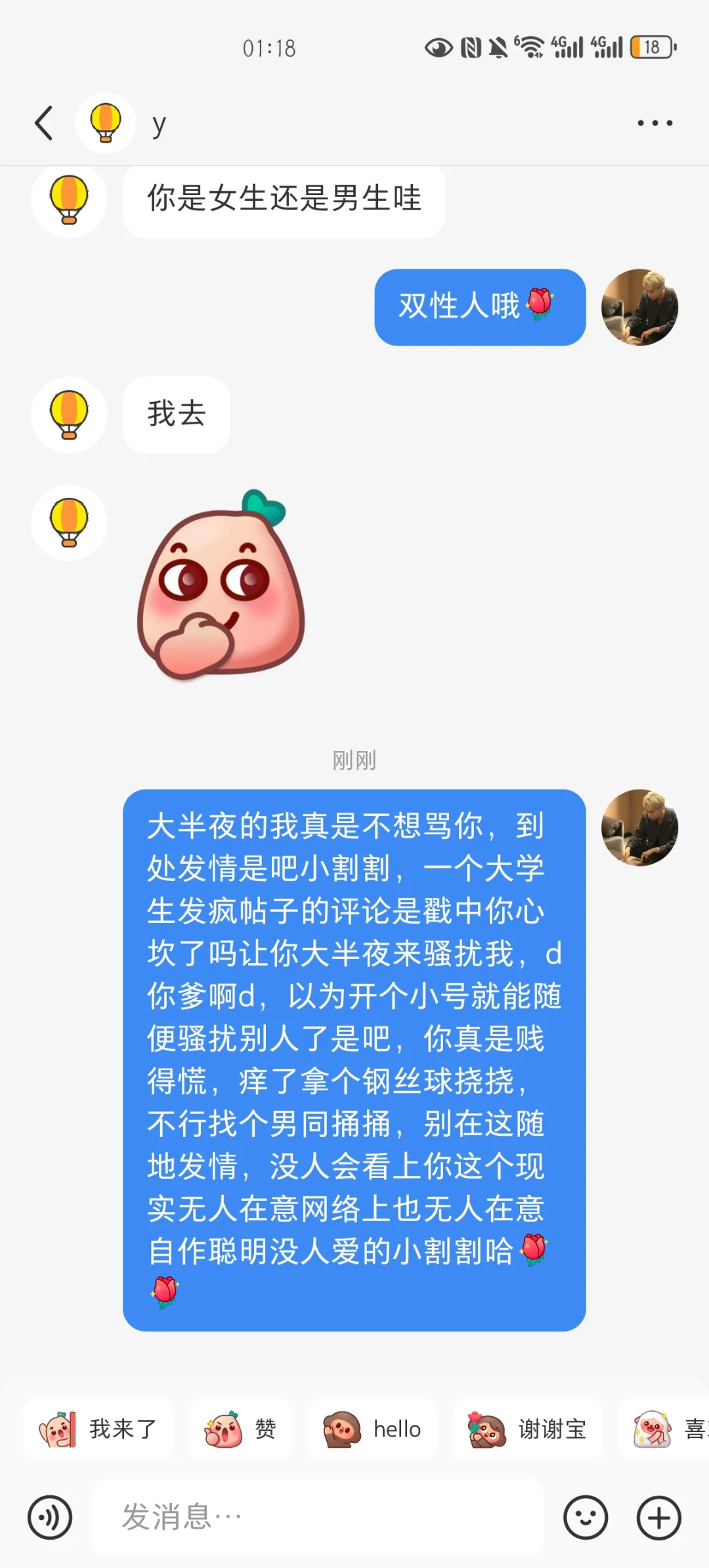 半夜到处发情骚扰无辜大学生的小割割一枚~
