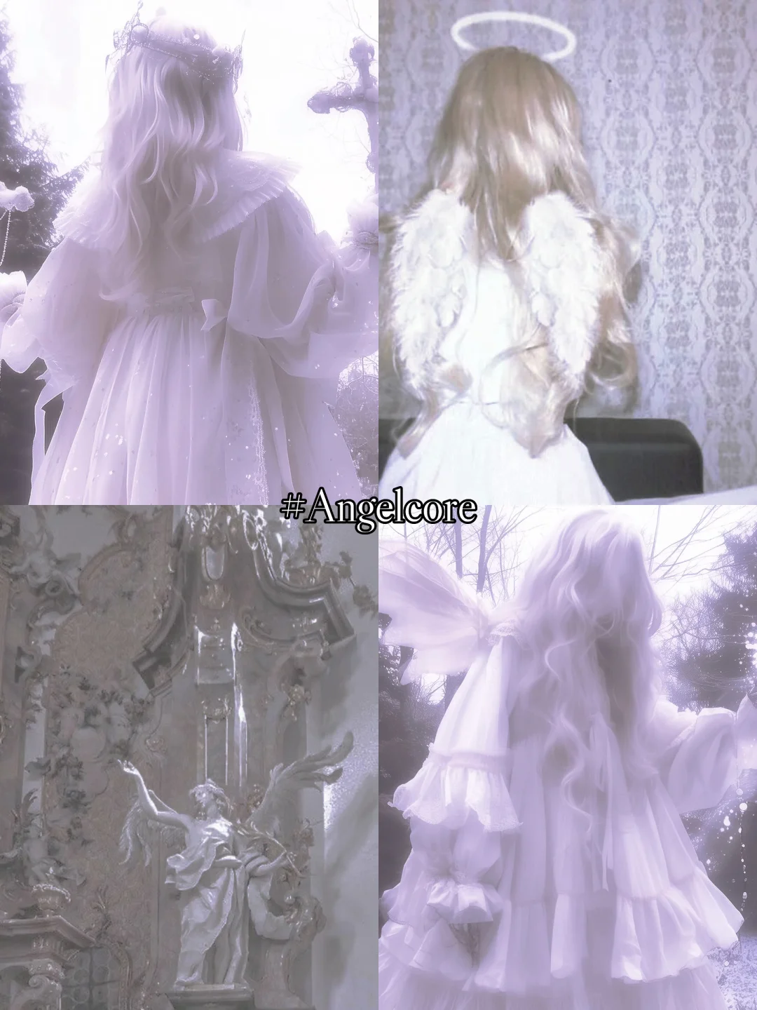Angelcore 是一种以天使、天国及相关神圣意象为核心的美学风格。它从文艺复兴时期的宗教绘画、拜占庭马赛克艺术以及普遍的天使传说中汲取灵感,营造出一种超脱尘世、纯洁、充满慈悲与守护感的氛围。其核心是对一种更高阶、更仁慈存在的向往,以及对内在神性与纯洁性的探索。