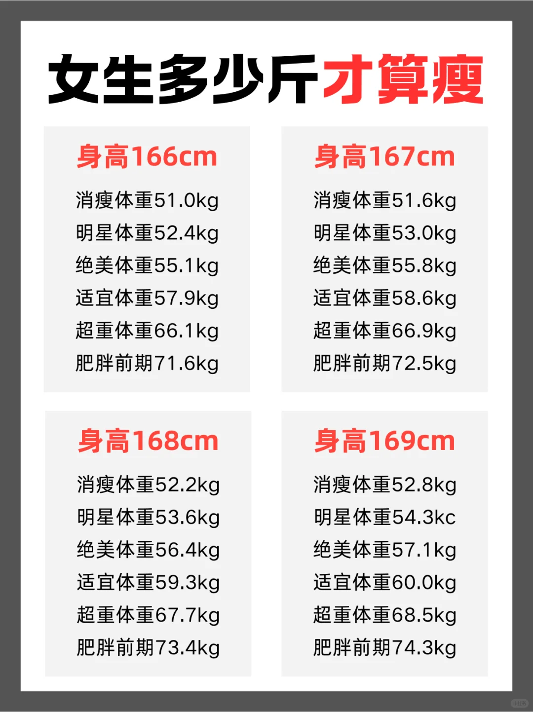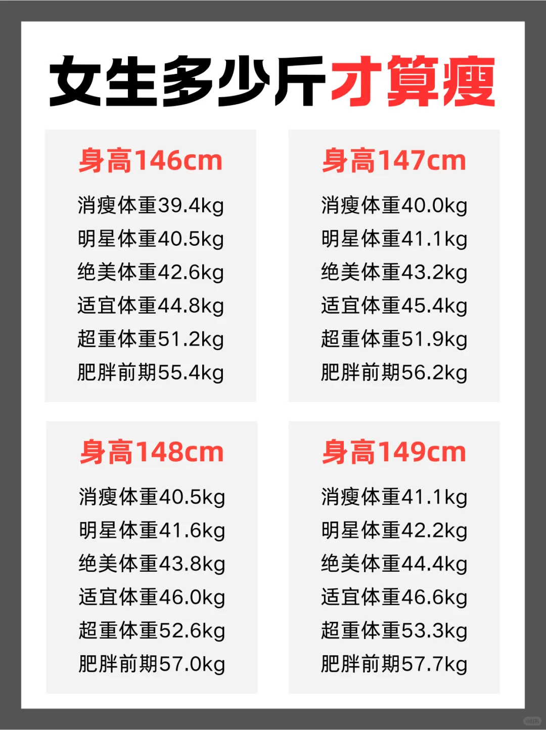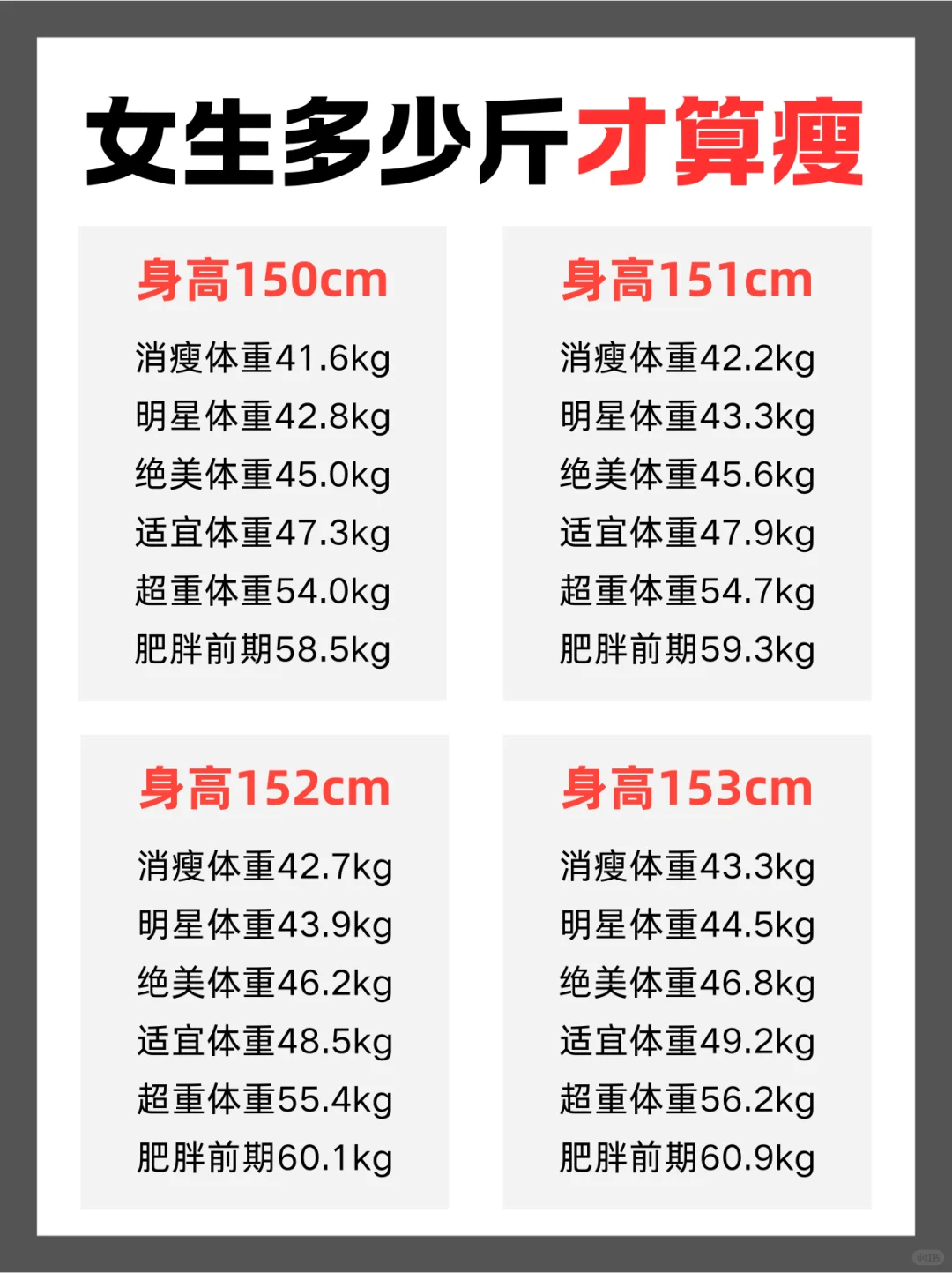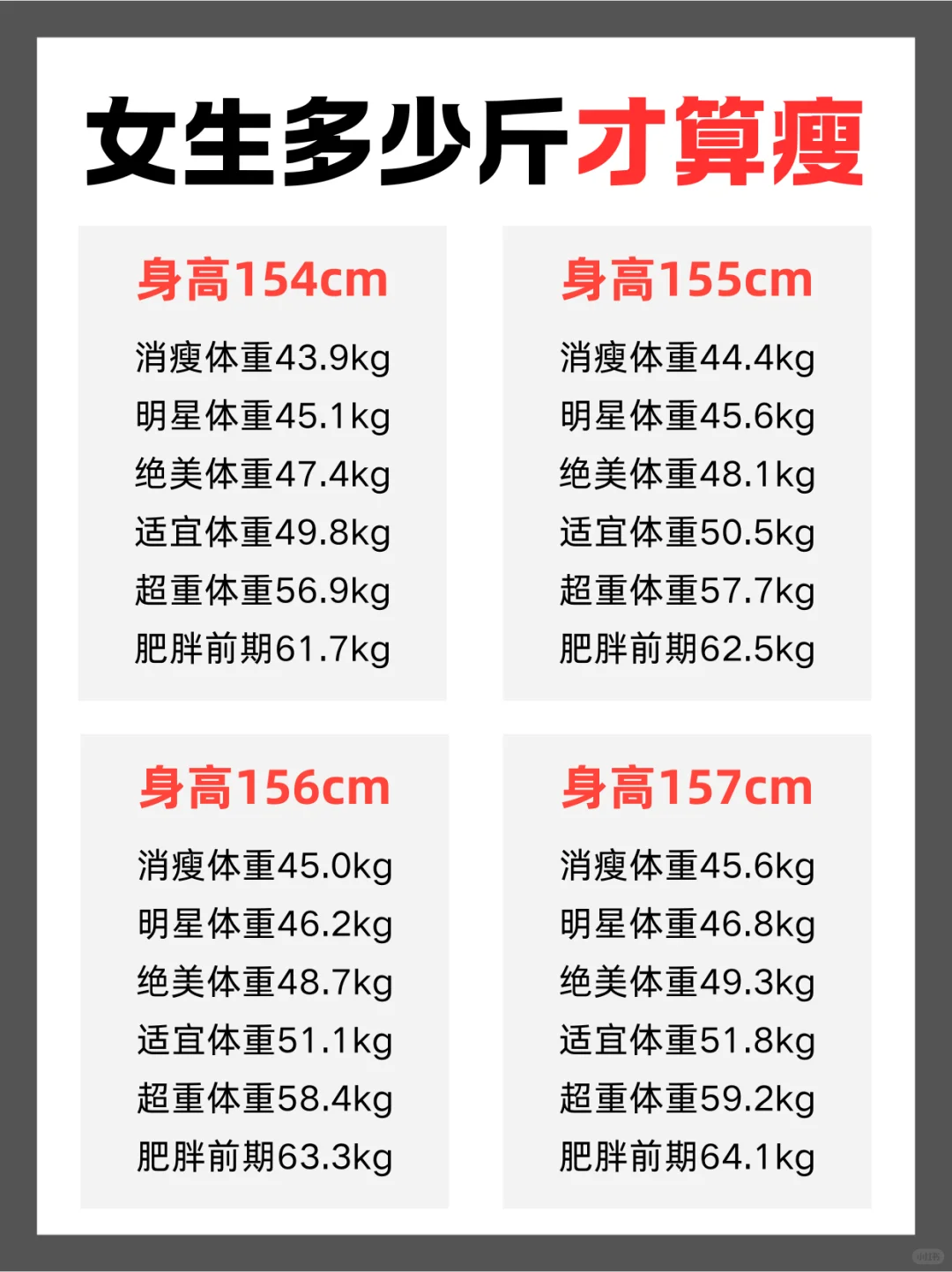 女生理想体重表来啦,快看看你在哪个档