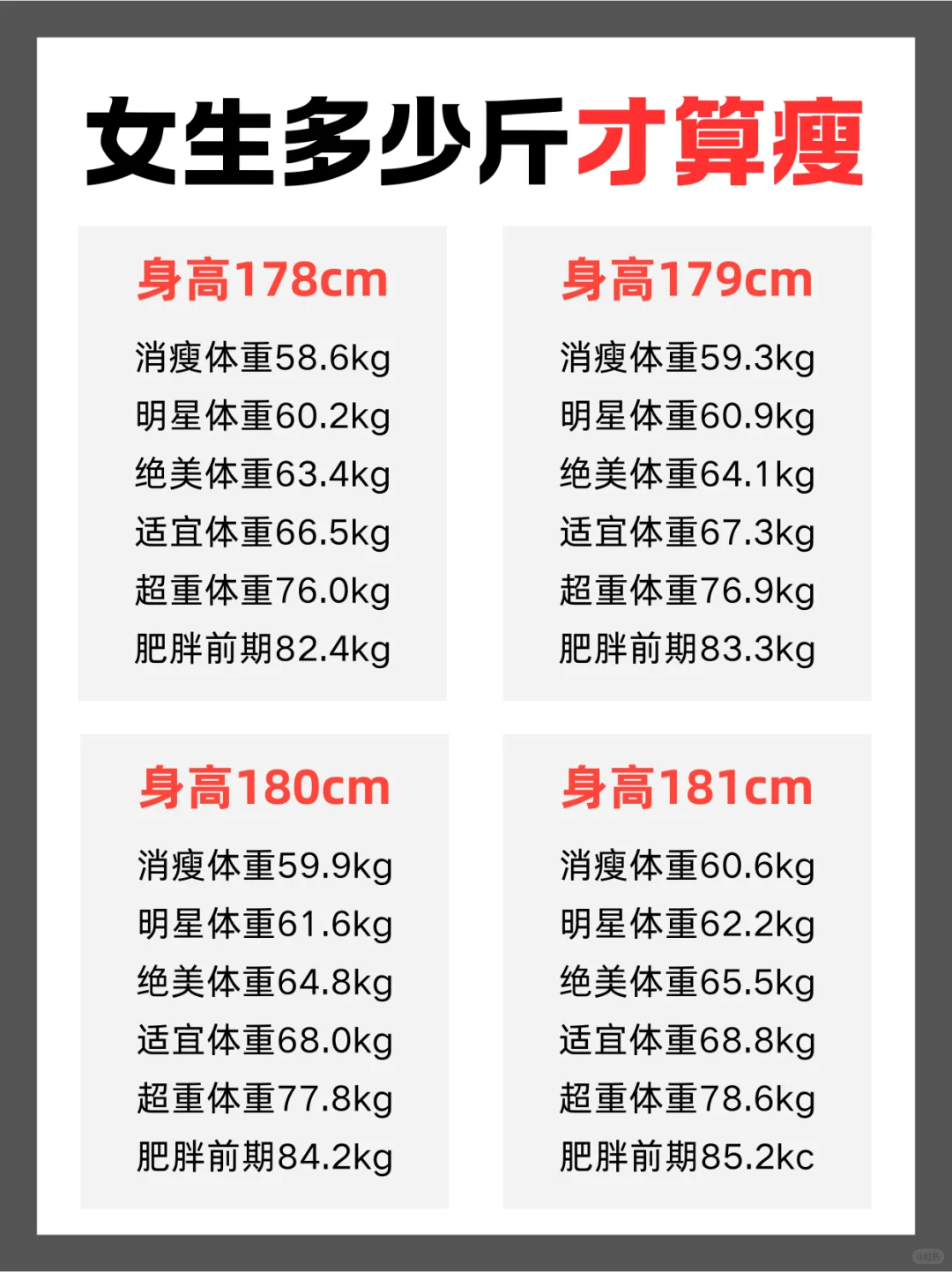 女生不同身高标准大汇总!