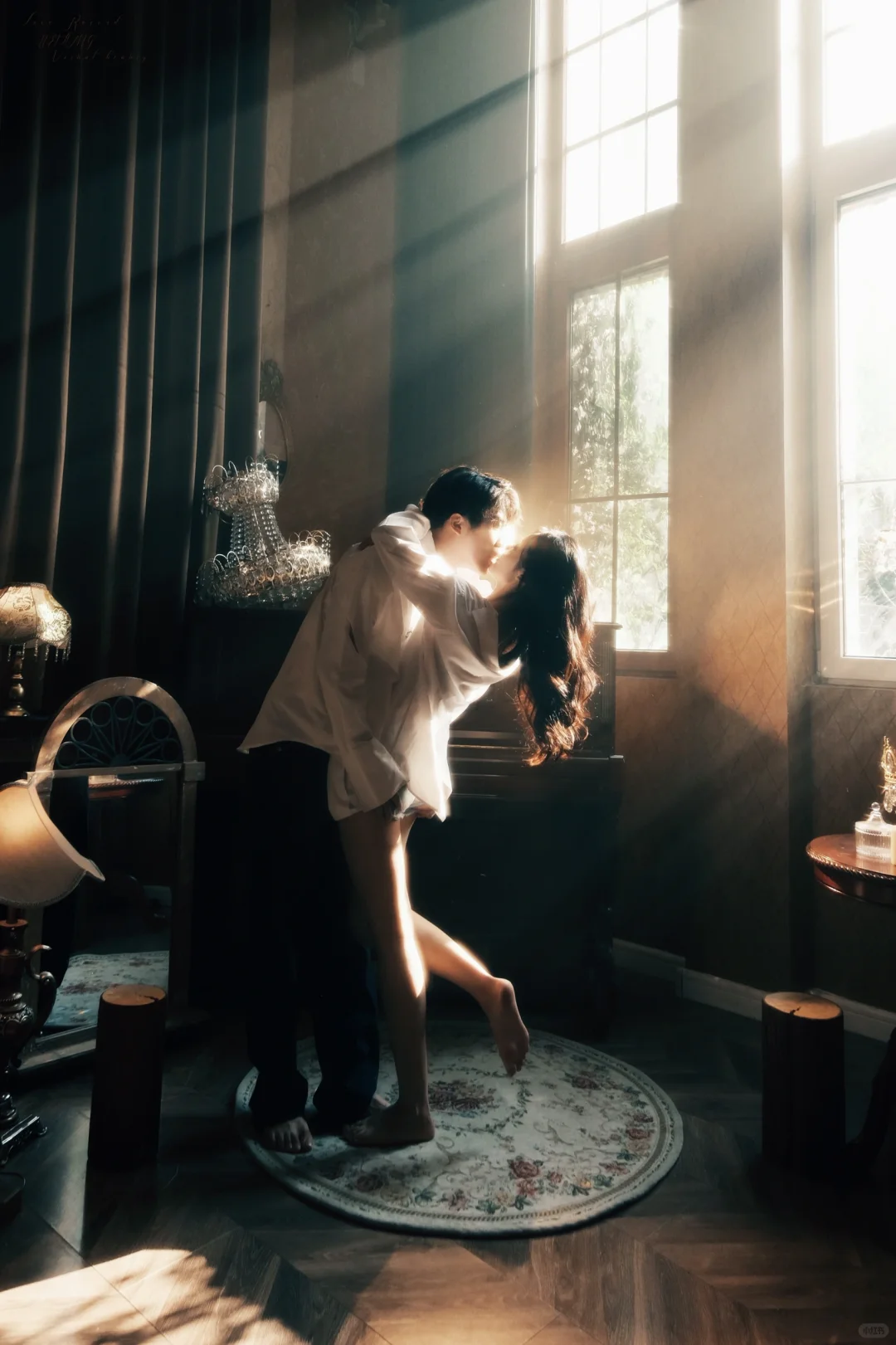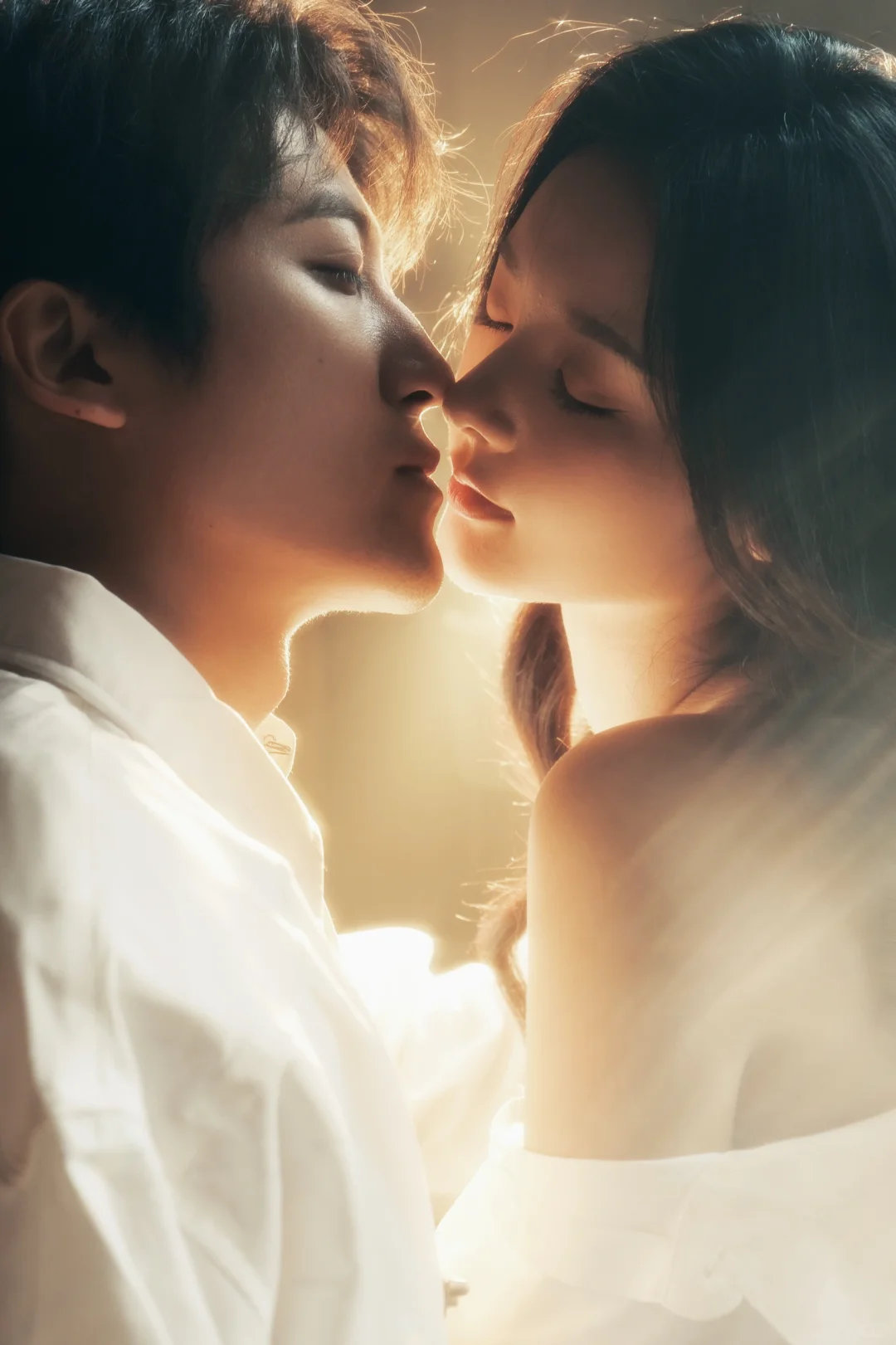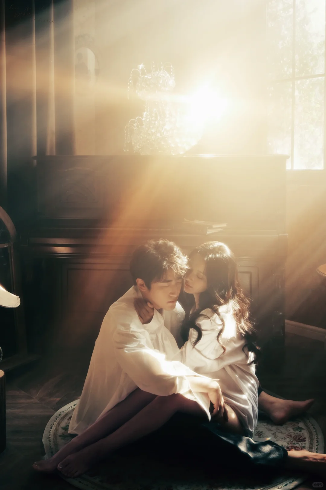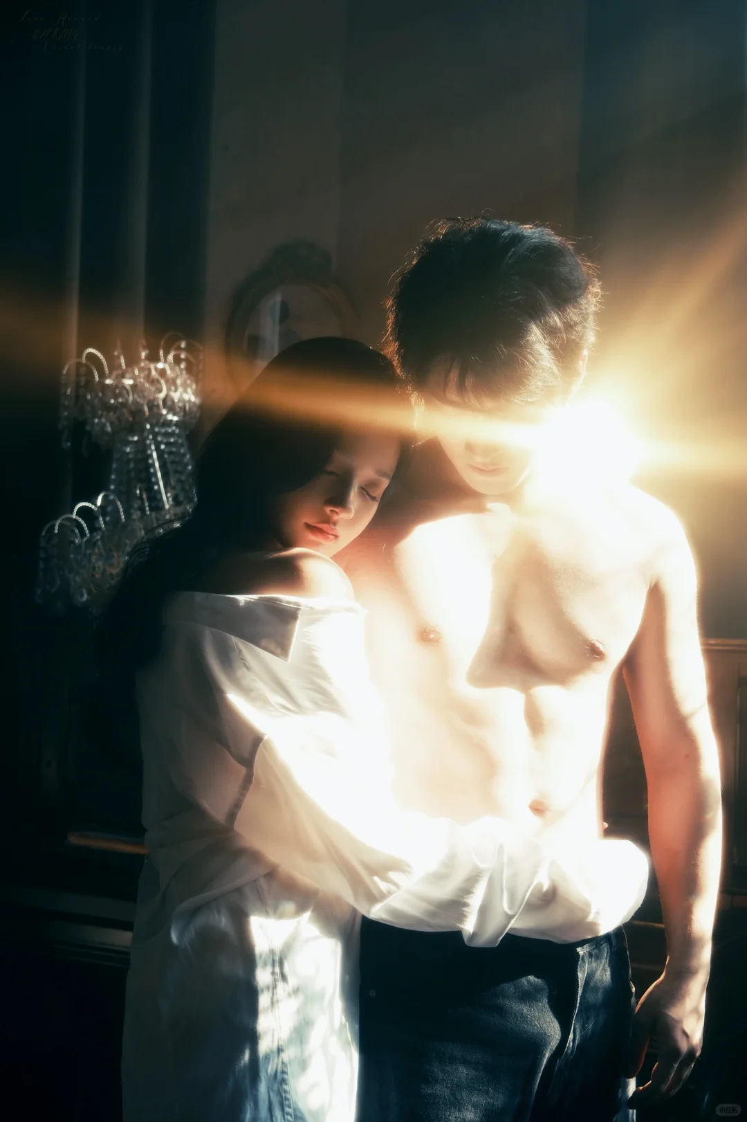 光晕漫过相拥的轮廓,爱意在明暗交织里具象成诗。那些未说出口的心动,都藏在你睫毛下跳跃的光斑里。快门定格的瞬间,时光都变得温柔而绵长。