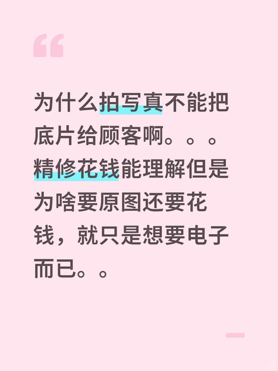 为什么拍写真不能把底片给顾客啊。。。精修花钱能理解但是为啥要原图还要花钱,就只是想要电子而已。。