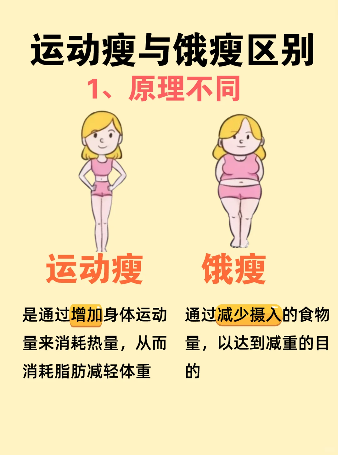 运动瘦:是通过身体锻炼来增强体质,提升肌肉质量,提升心肺功能等,从而提高了整体健康水平。🥰