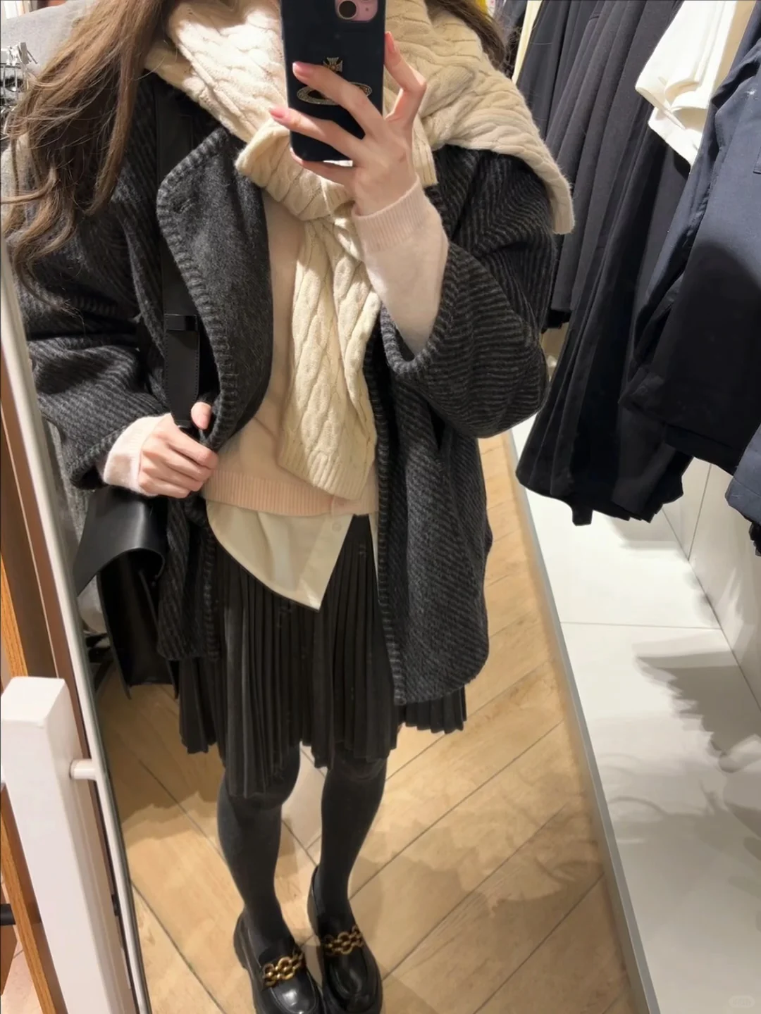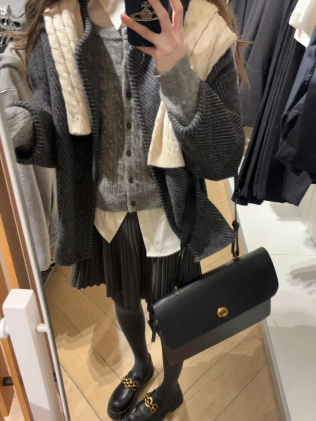 可以搭配衬衫/紫色裤子/百褶裙 再加一个皮包就可以啦 简单好看