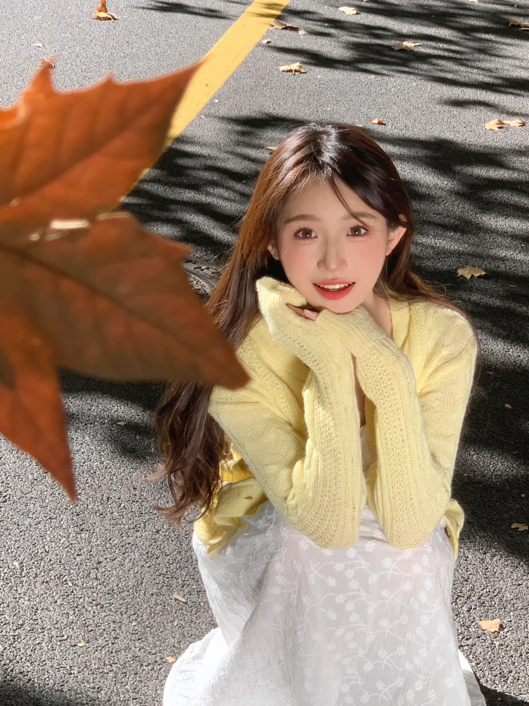 秋天这么拍落叶真的太好康啦!一整个氛围感满满~有韩剧女主那味啦