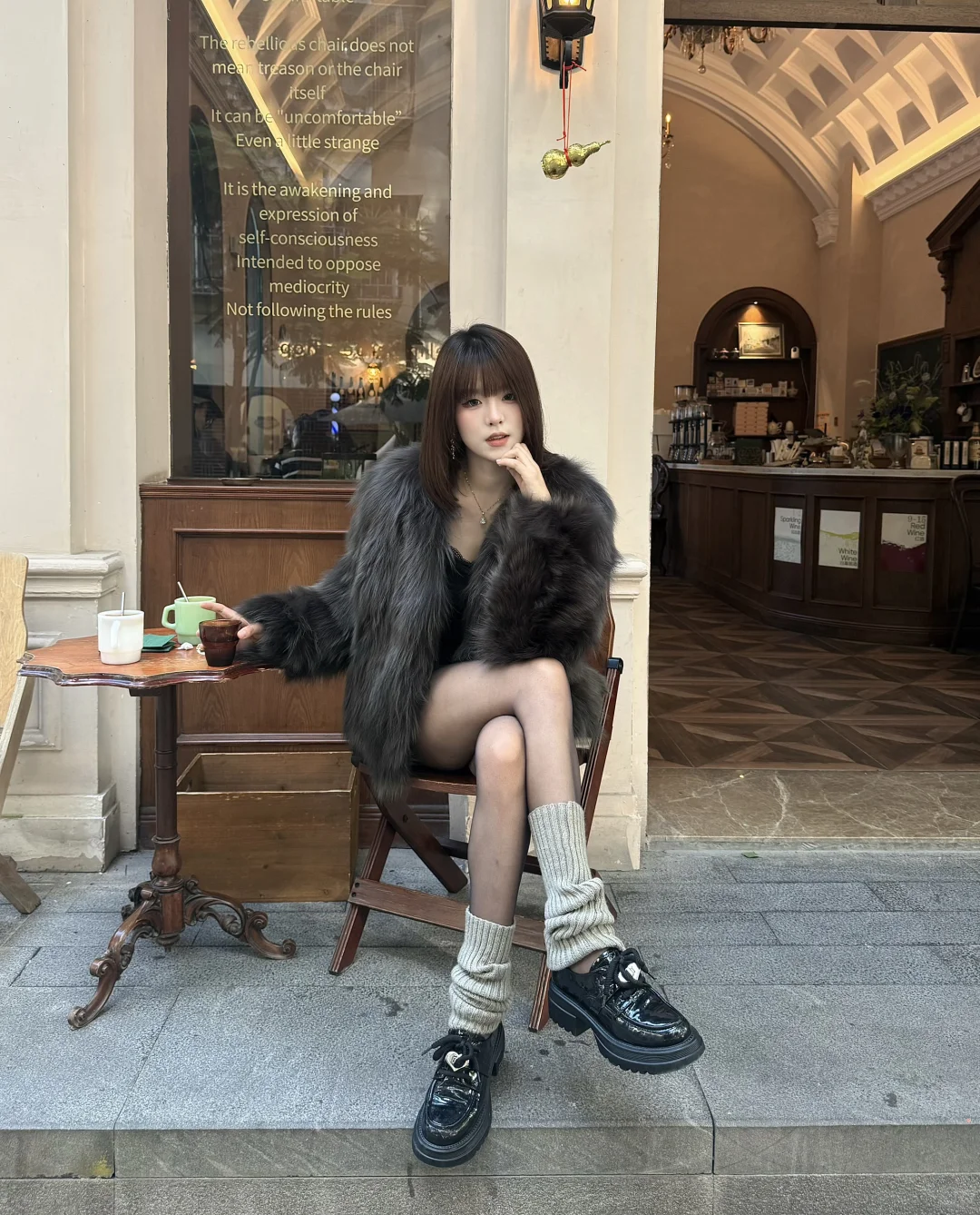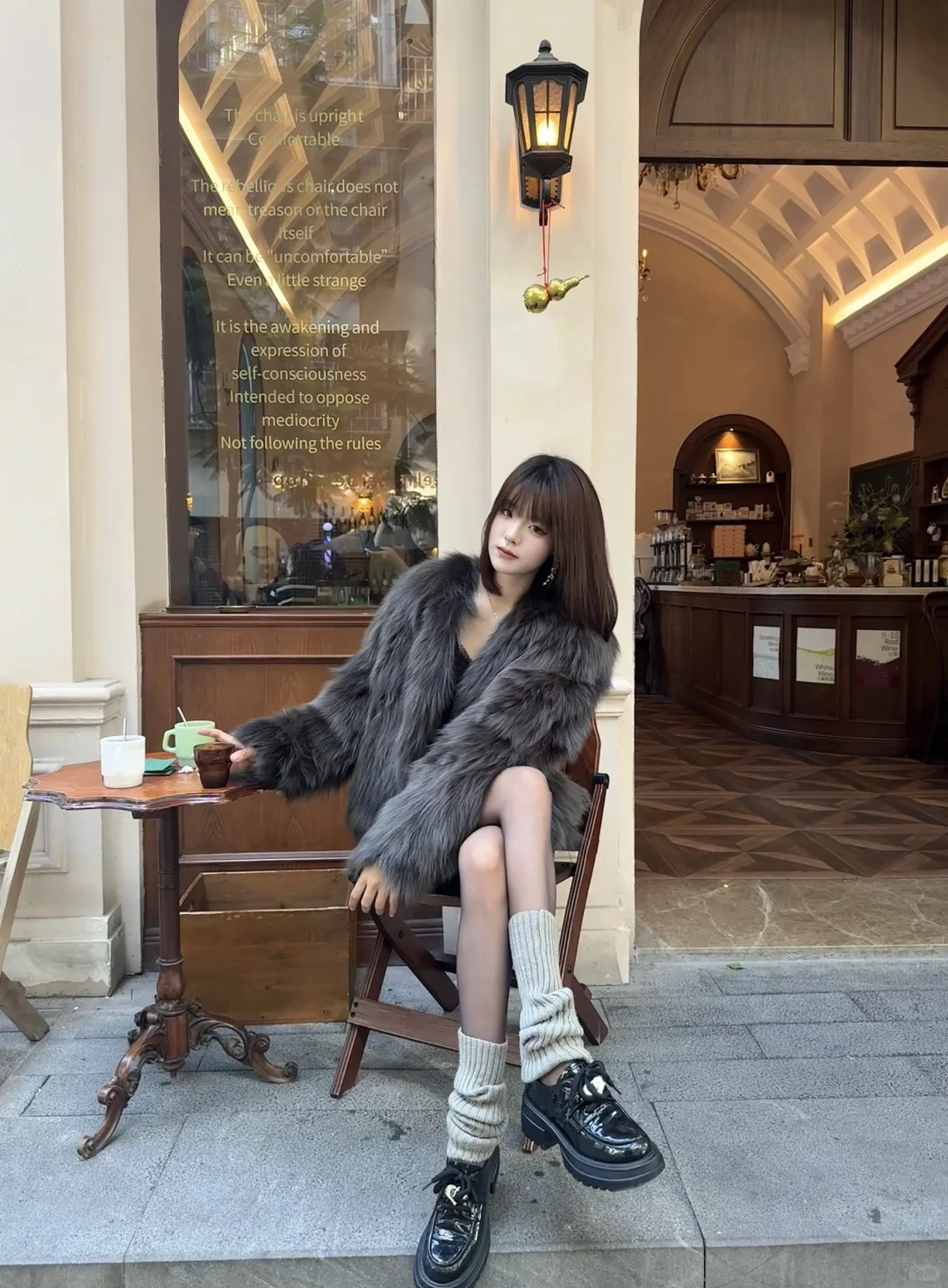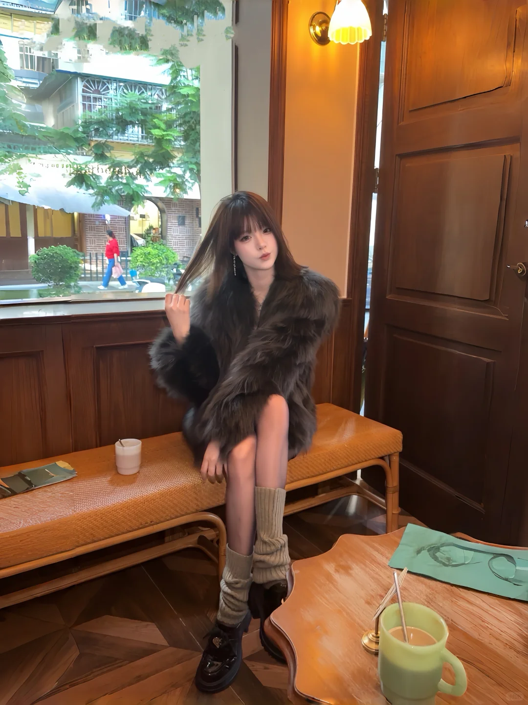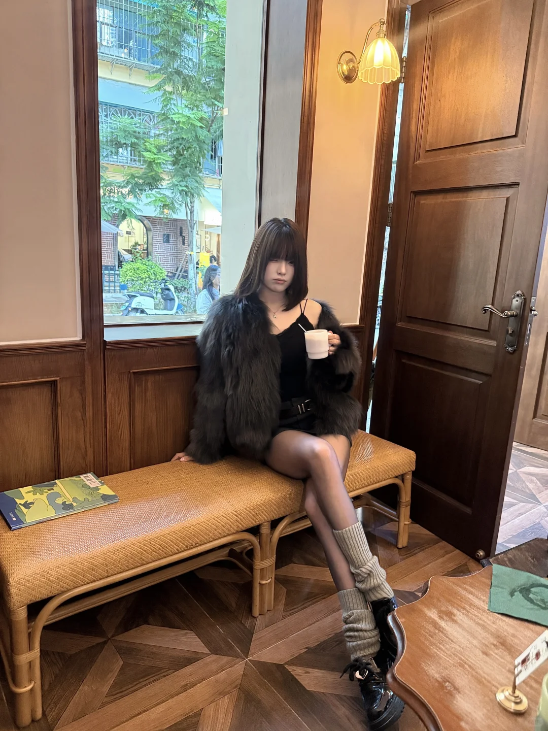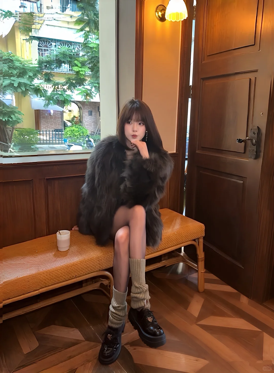 皮草➕黑丝➕袜套 好韩好喜欢!🍂