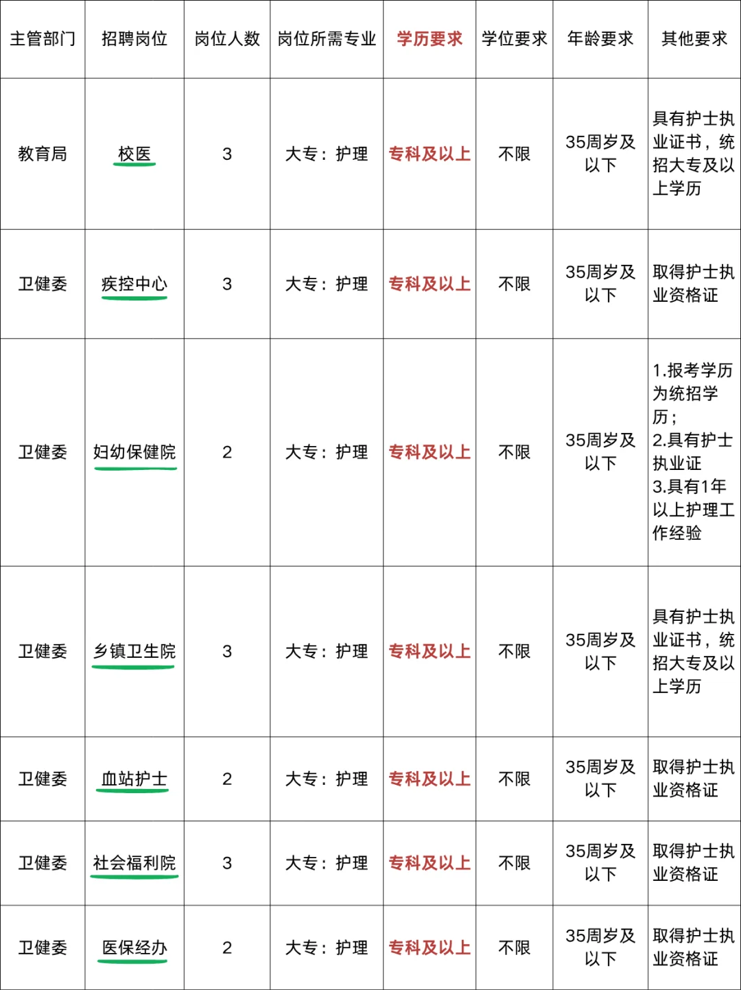 😍有卫健委,血站护士,疫苗接种,福利院,社区卫三甲医院,中医院,医保局,校医等岗位可以选择!
