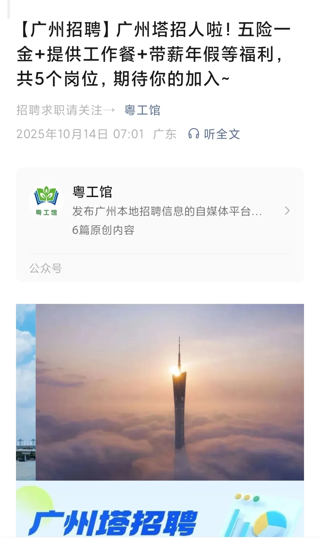 广州塔招聘讲解员工程主管保安导赏员等岗位