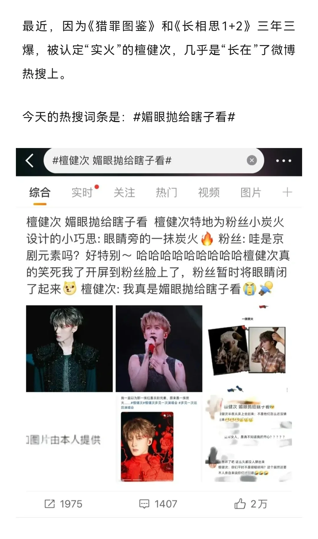 最近,因为《猎罪图鉴》和《长相思1+2》三年三爆,被认定“实火”的檀健次,几乎是“长在”了微博热搜上。