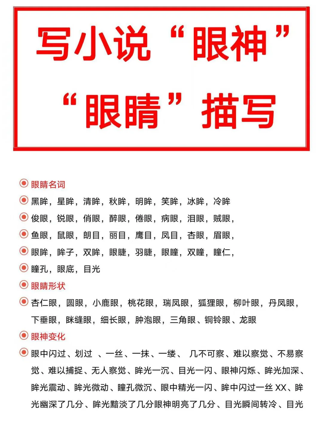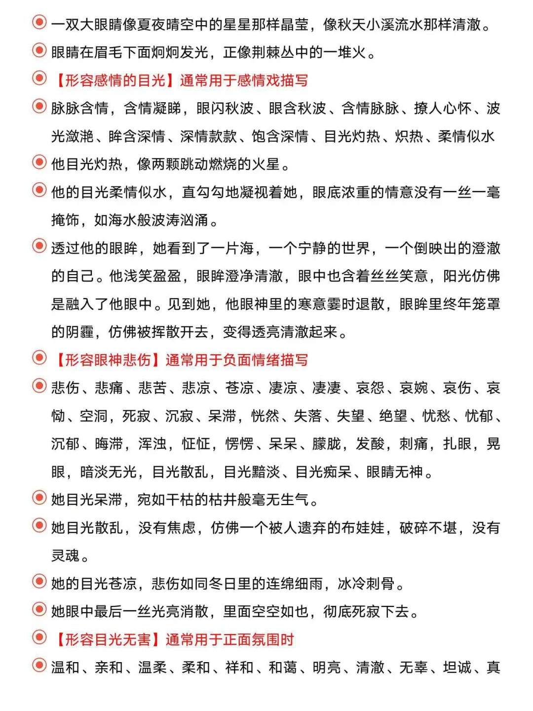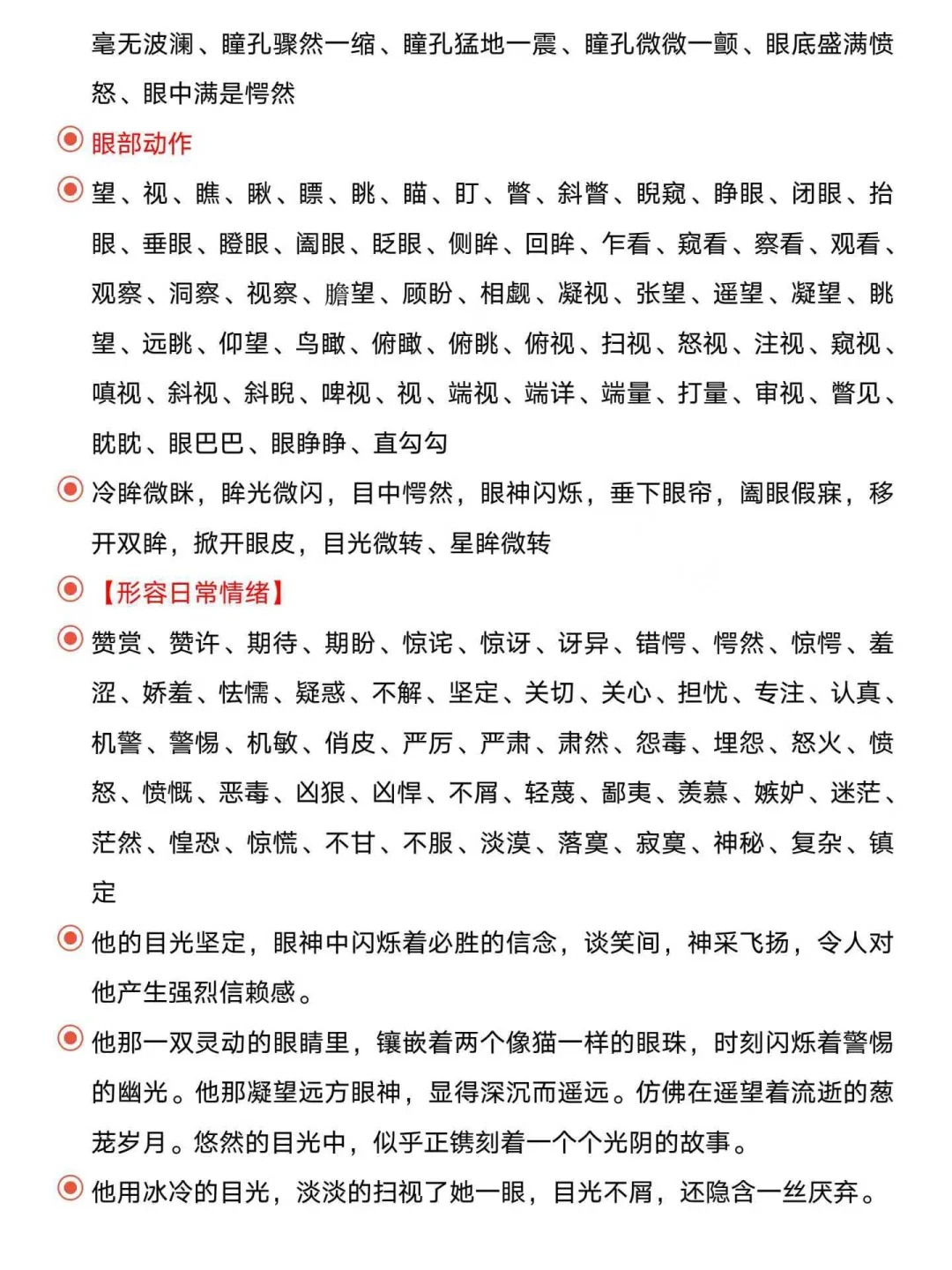 写小说“眼神”“眼睛”描写