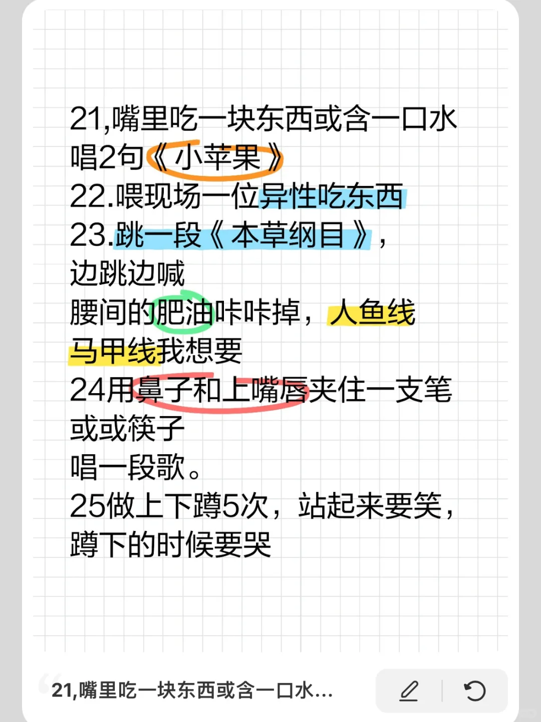 21,嘴里吃一块东西或含一口水唱2句《小苹果》