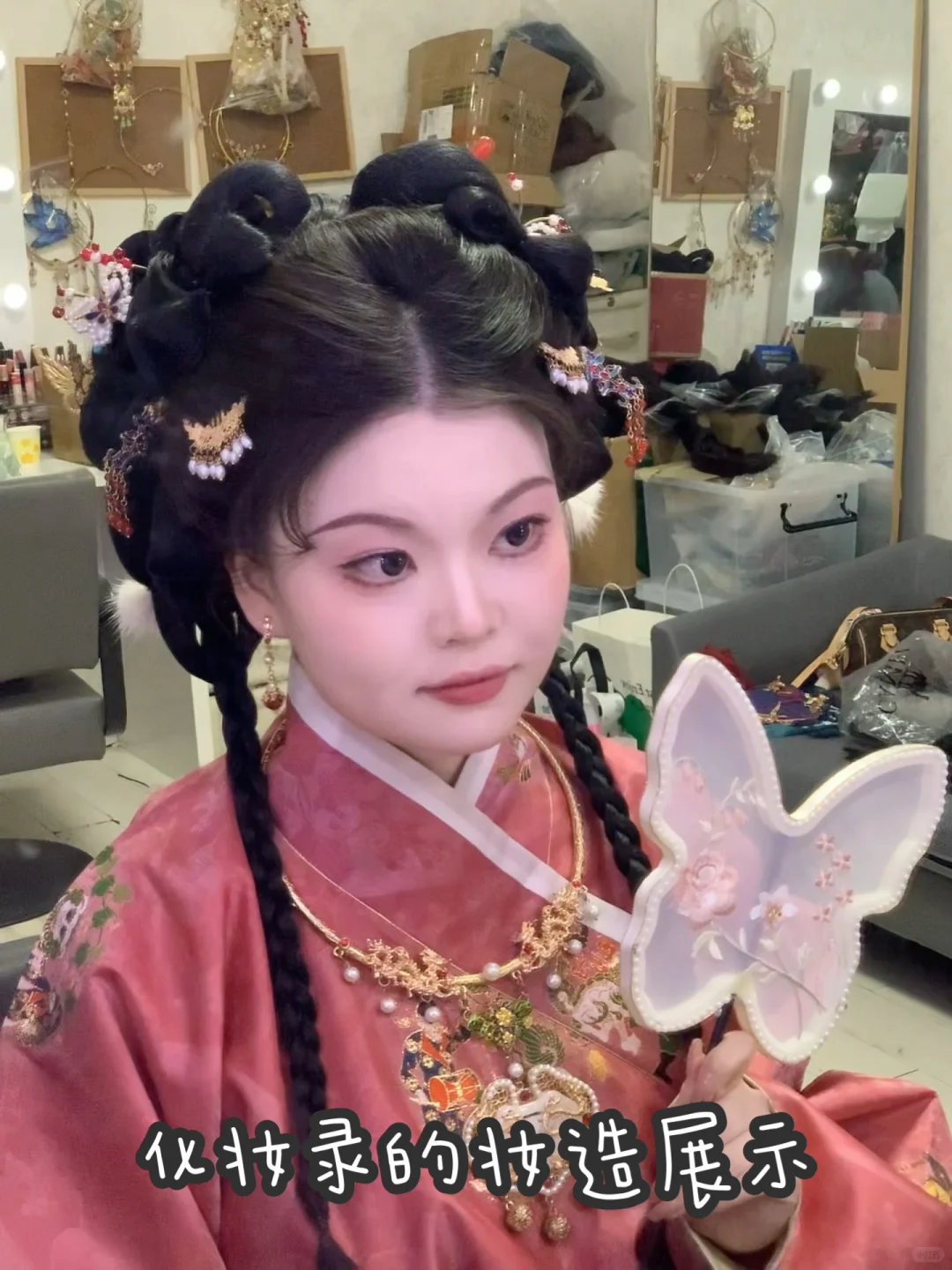 两个化妆师审美在线,态度非常认真,我这次还体验了“接力化妆”——一人画眼妆,另一人画修容,一人接发型,另一人配饰品,互相能接上思路,全程顺滑我这个造型做了三个多小时,沉甸甸的大头。