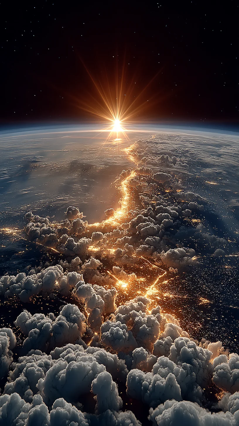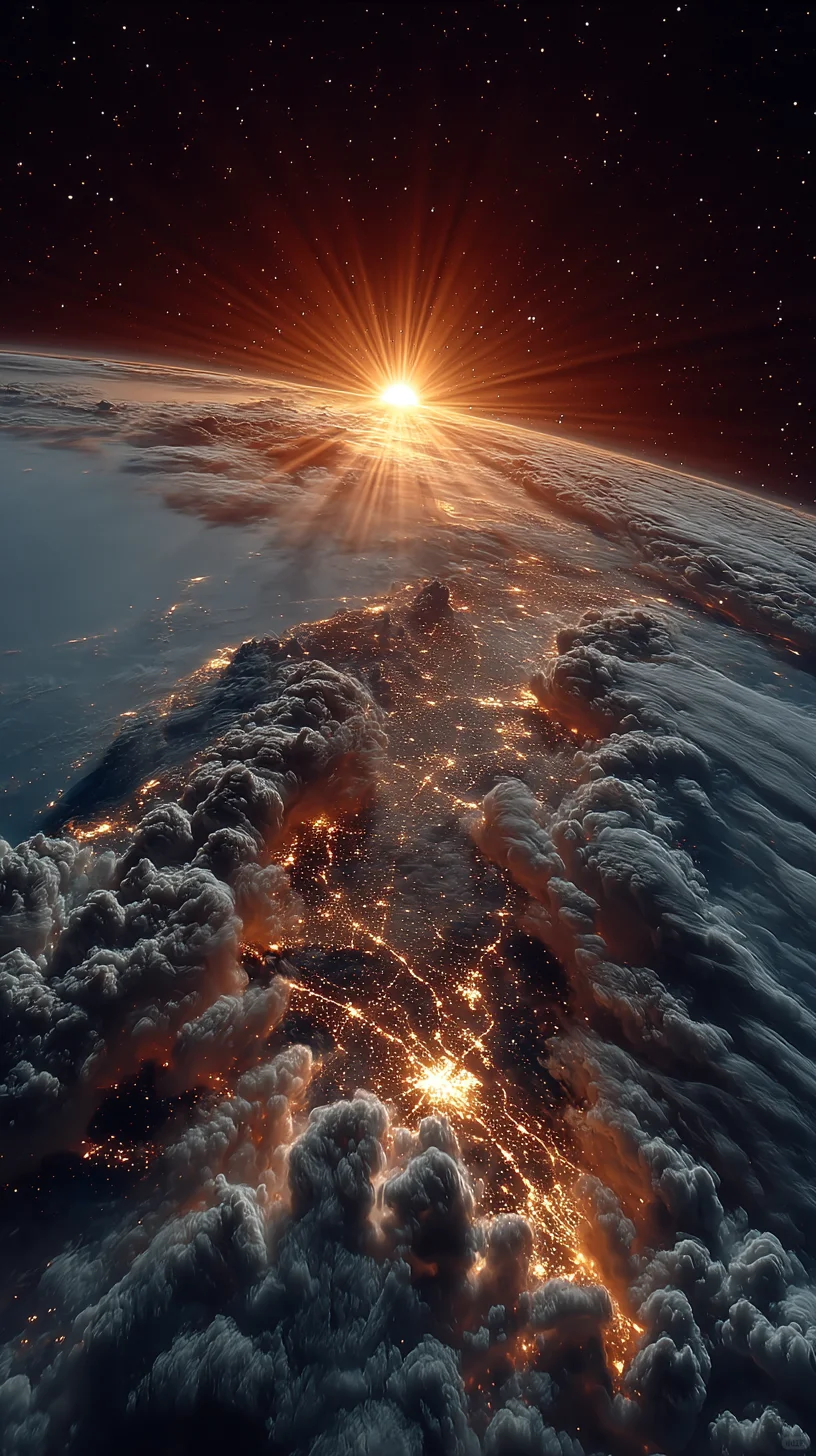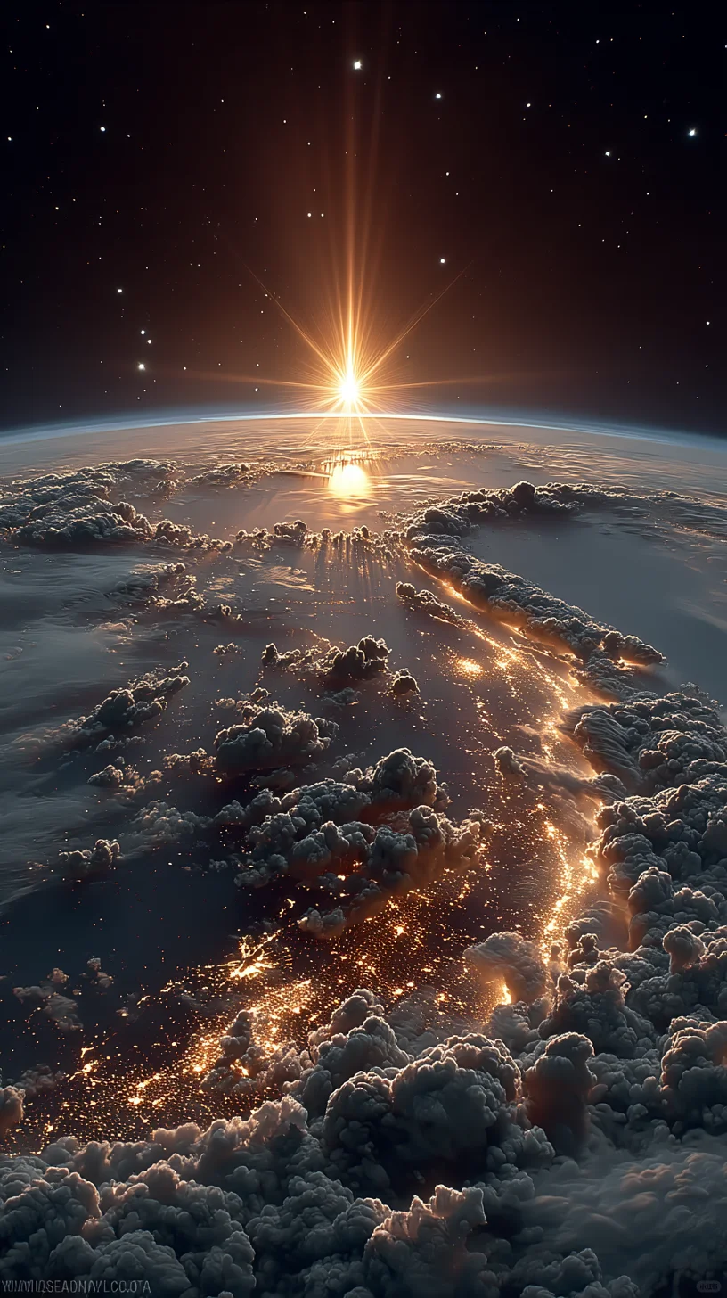 当第一缕金色的阳光☀️冲破地平线,瞬间点亮了地球的轮廓,那道绝美的蓝色大气辉光,简直像是地球的守护光环。云层☁️在晨曦中被镶上了金边,而我们脚下的这片土地,在沉睡中依然闪耀着温暖的城市灯火,像不像散落在夜幕上的繁星?✨