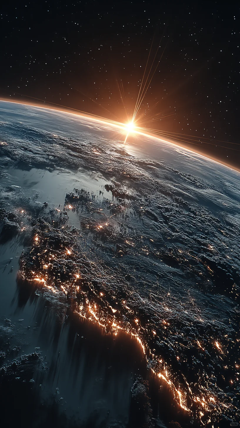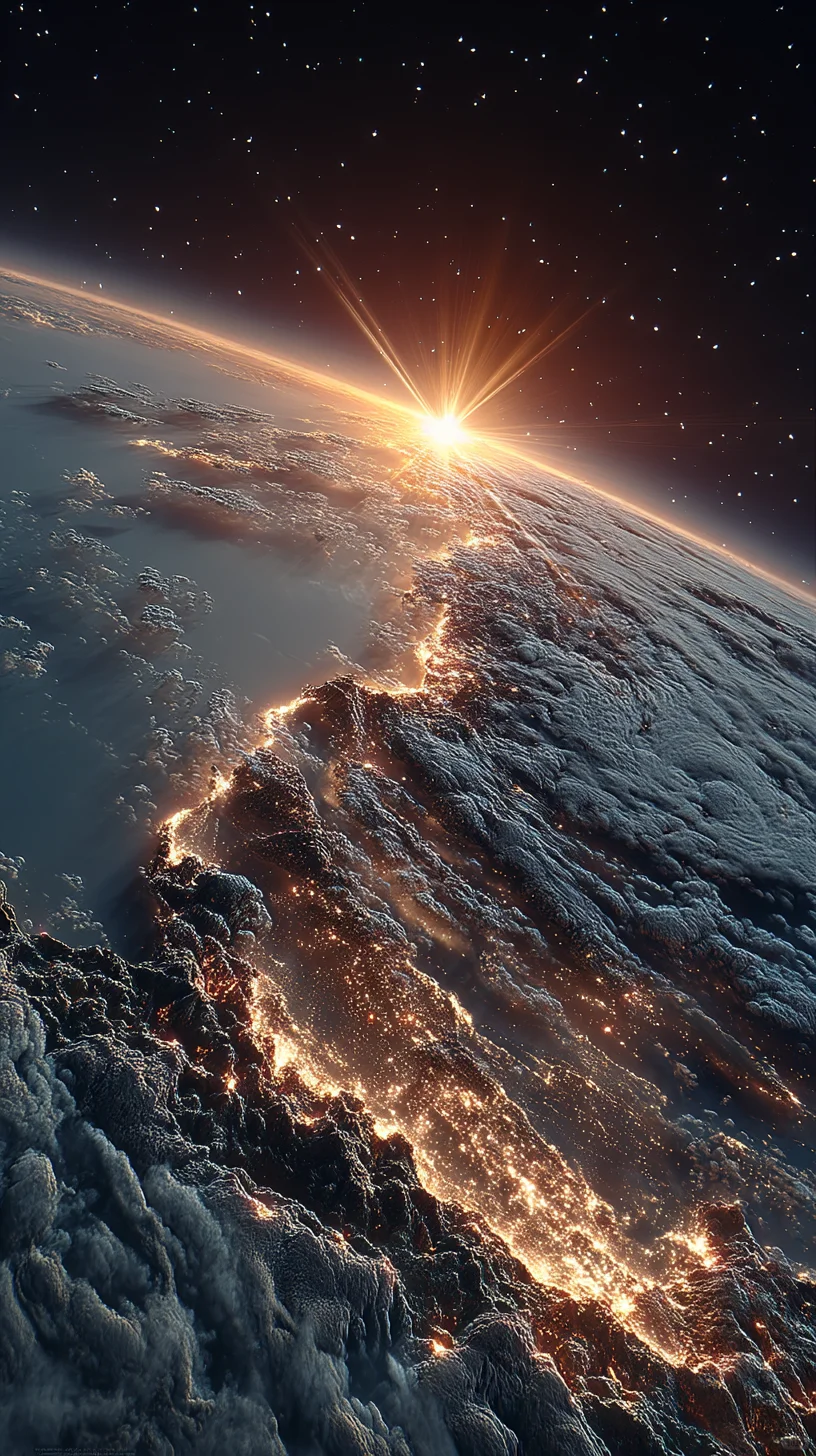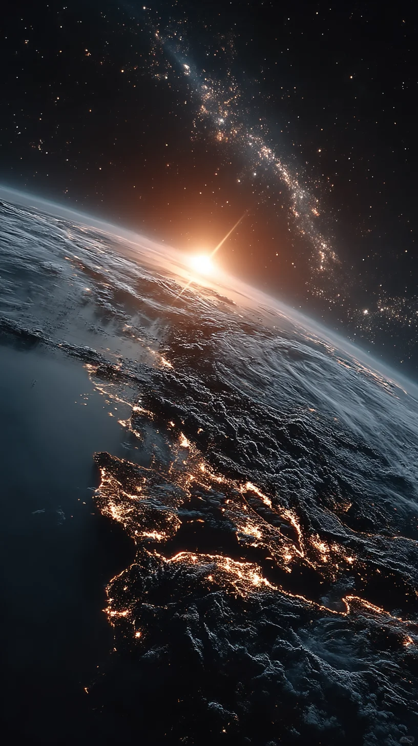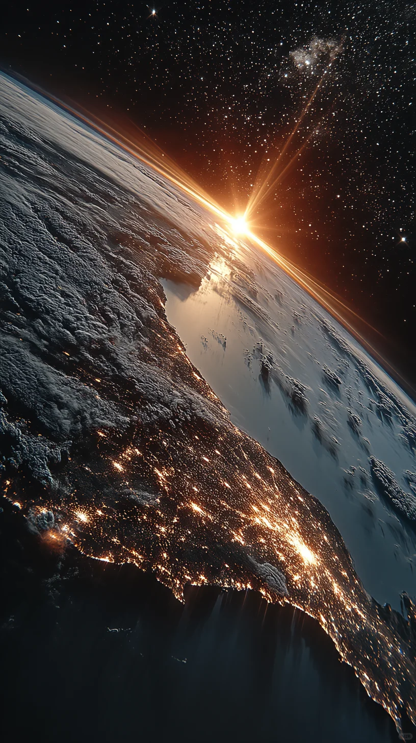 当第一缕金色的阳光☀️冲破地平线,瞬间点亮了地球的轮廓,那道绝美的蓝色大气辉光,简直像是地球的守护光环。云层☁️在晨曦中被镶上了金边,而我们脚下的这片土地,在沉睡中依然闪耀着温暖的城市灯火,像不像散落在夜幕上的繁星?✨