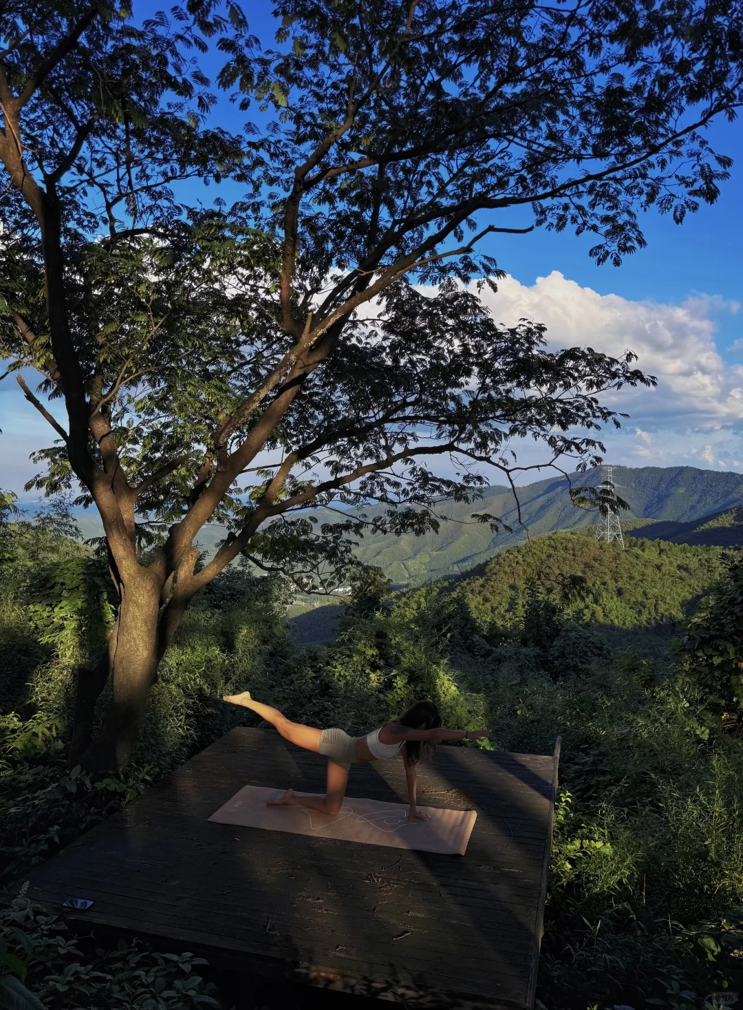 如今,在这青山绿树间,一张瑜伽垫就是我的小天地