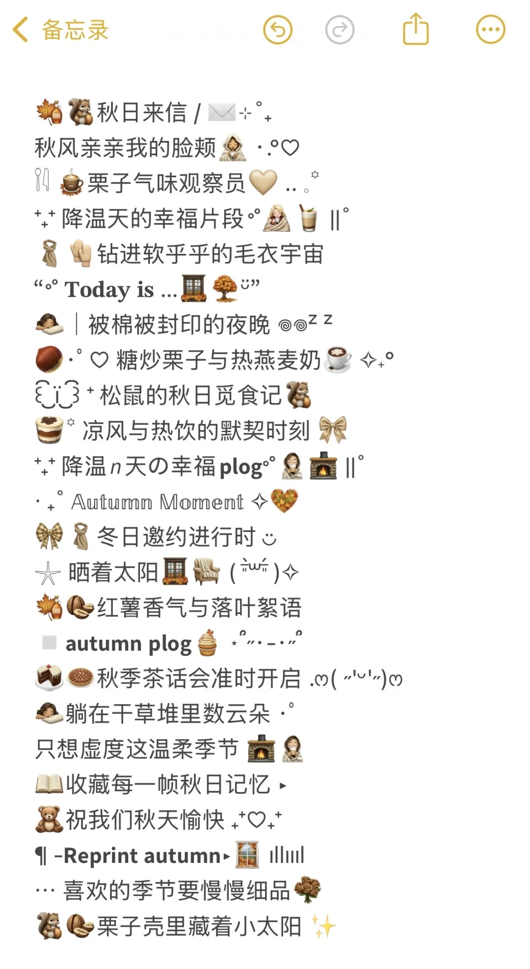 #ins风 #plog素材 #秋日文案 #秋天来了 #秋日氛围感 #emoji表情 #朋友圈文案 #镜头里的秋日私语 #治愈系秋天 #文案分享