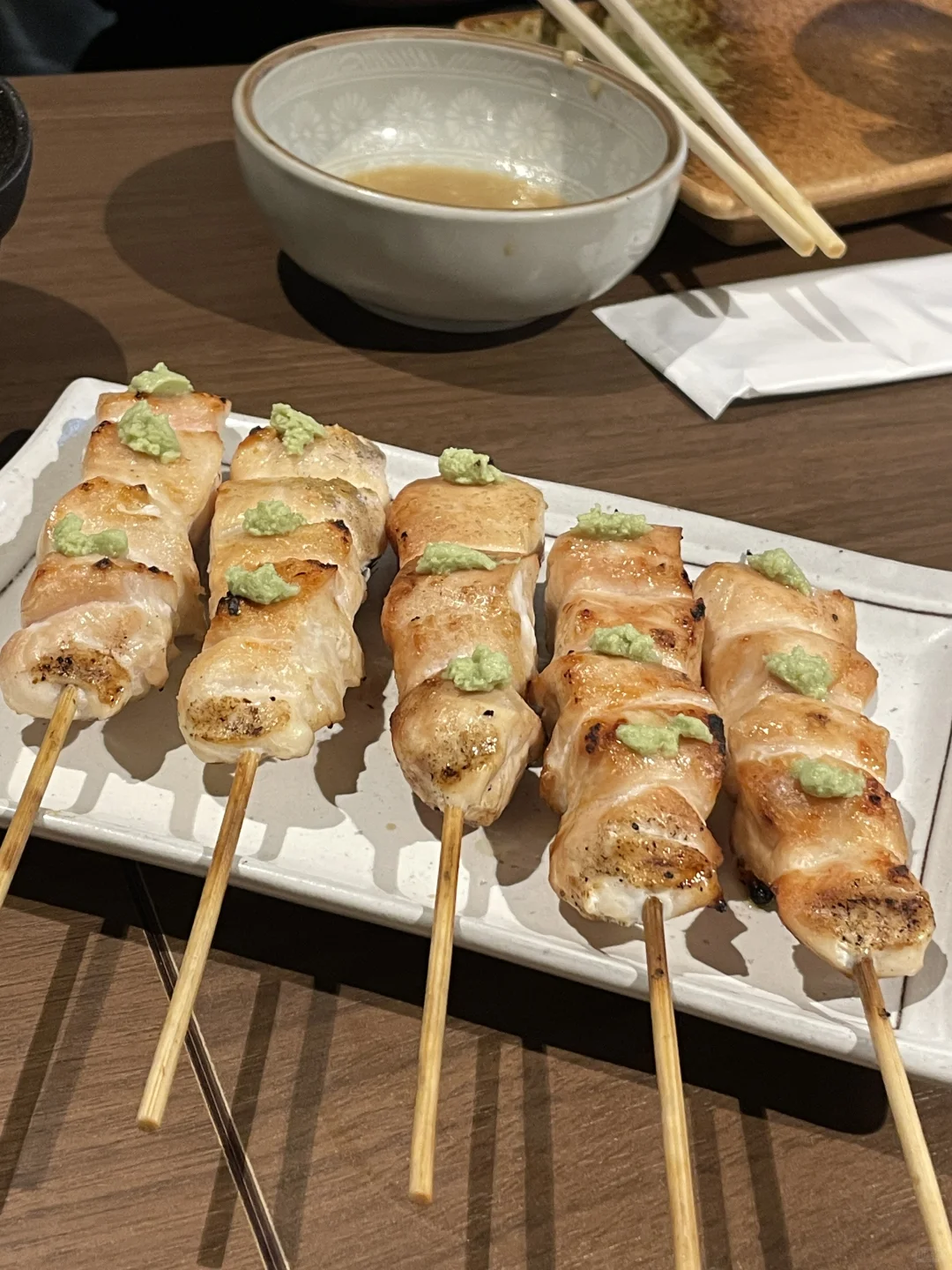 5️⃣还有一个椒盐鸡肉串点了一滴瓦萨米芥末味道是真的上头