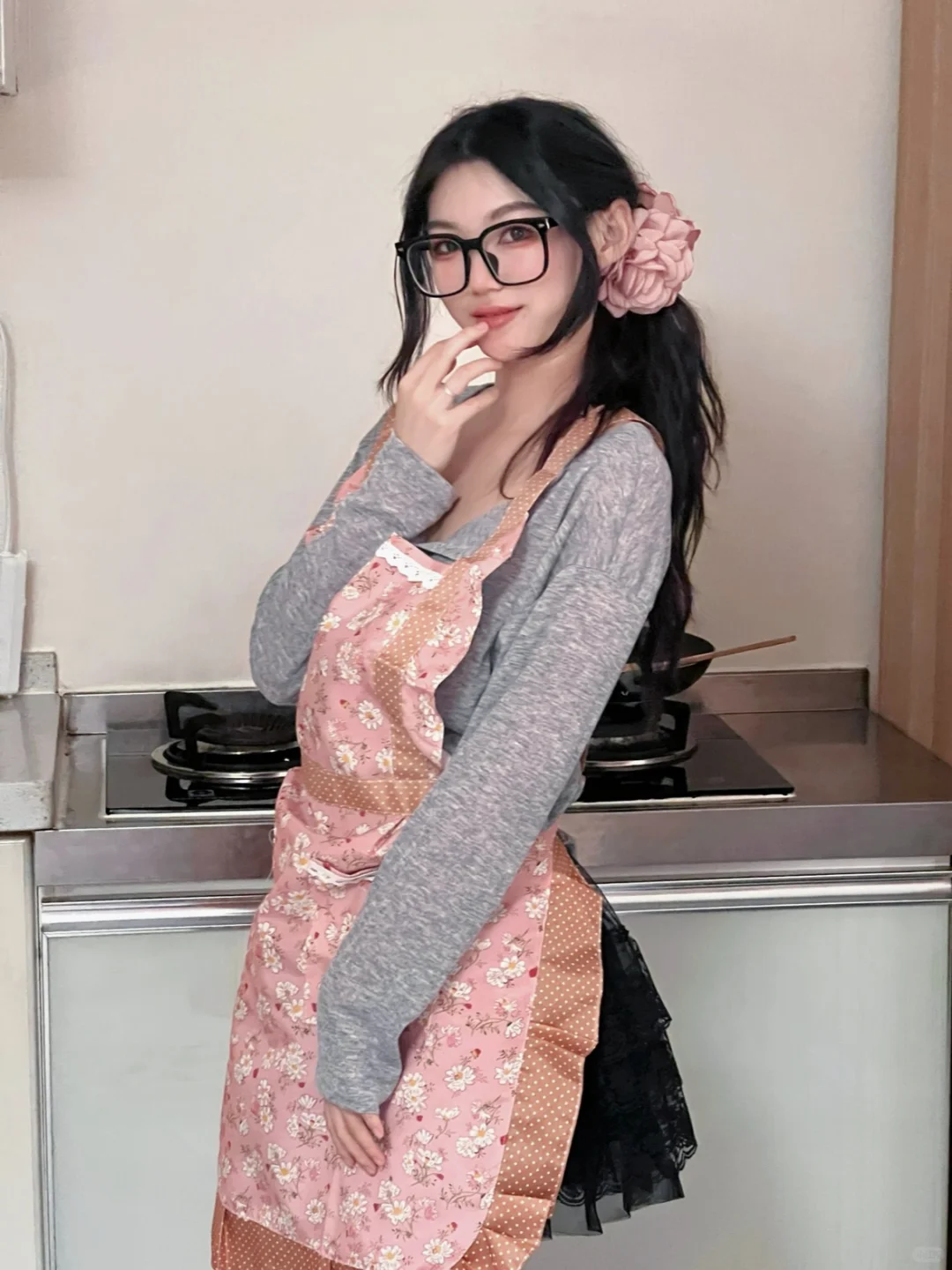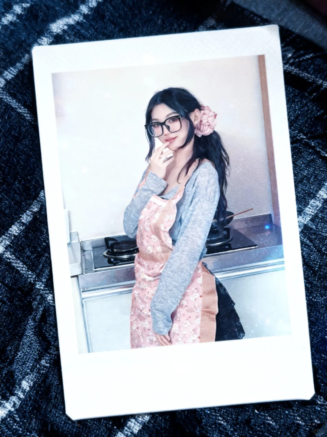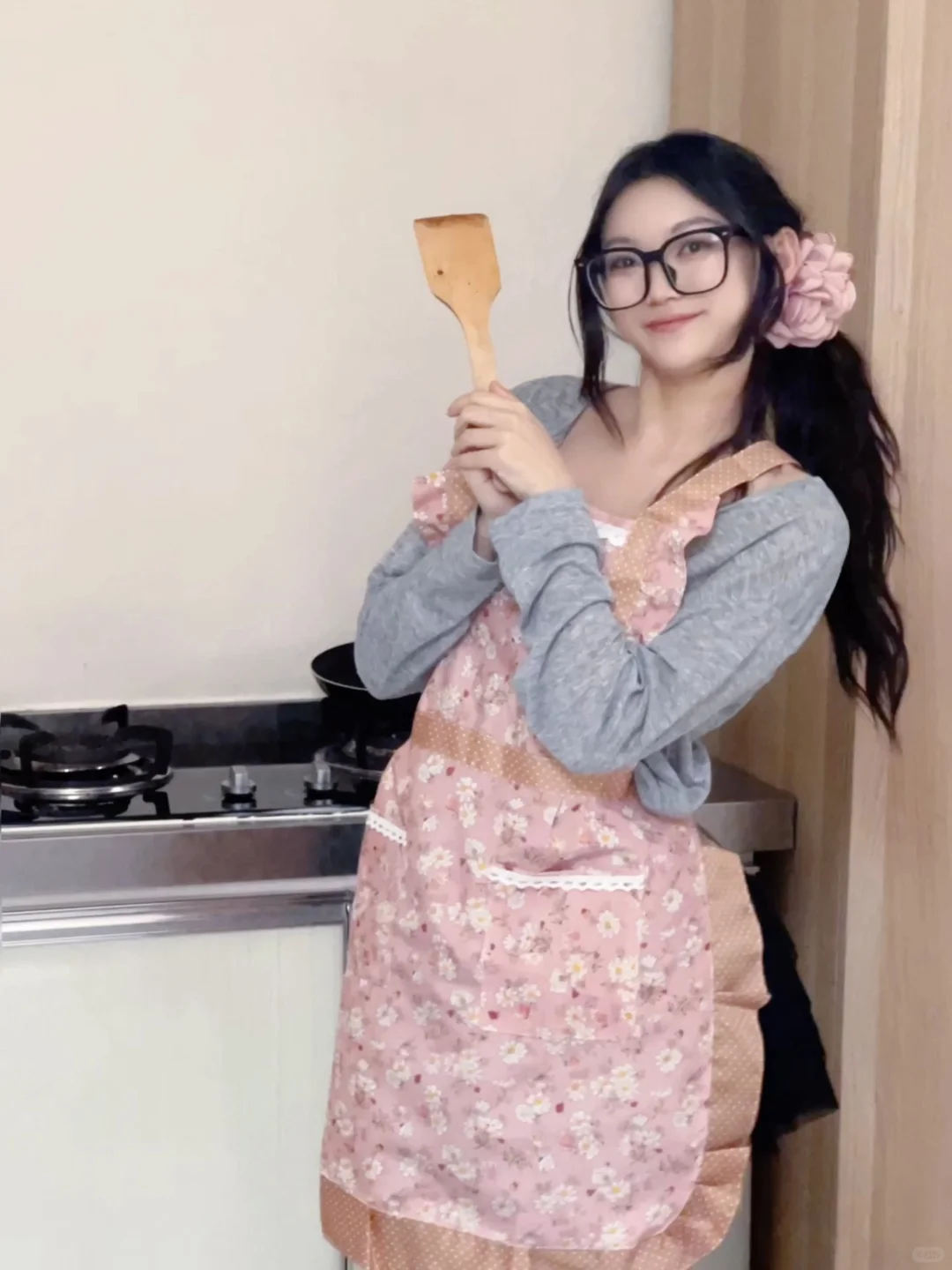穿上围裙拍照啦,听说侧马尾会显得很温柔?