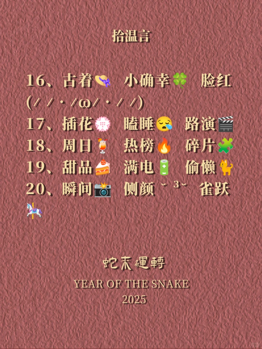#生活碎片#朋友圈文案#手帐素材#治愈短句#氛围感文案#emoji文案#高级感文案#情绪碎片#文艺风#朋友圈美学#短句控#治愈系#生活美学#文案收集#小众文案#浪漫收藏家#句子控#朋友圈排版#温柔系#每日文案#拾温言#文字的魅力#美图美句#文字的温度#文字治愈系#打动人心的文字