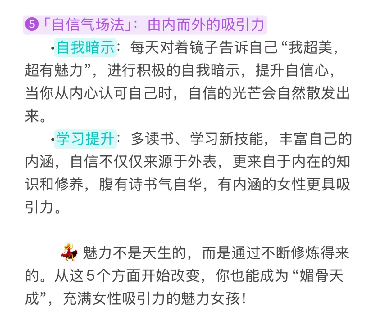 🔹「自信气场法」:对镜喊“我超美”,多读书学技能,腹有诗书的自信女孩谁不爱?📚