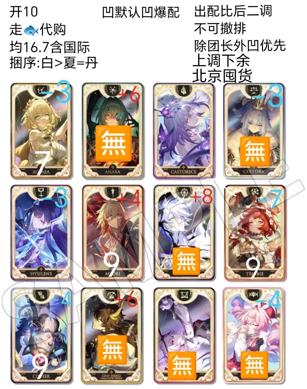 tag阿格莱雅 遐蝶 海瑟音 万敌 缇宝 赛飞儿