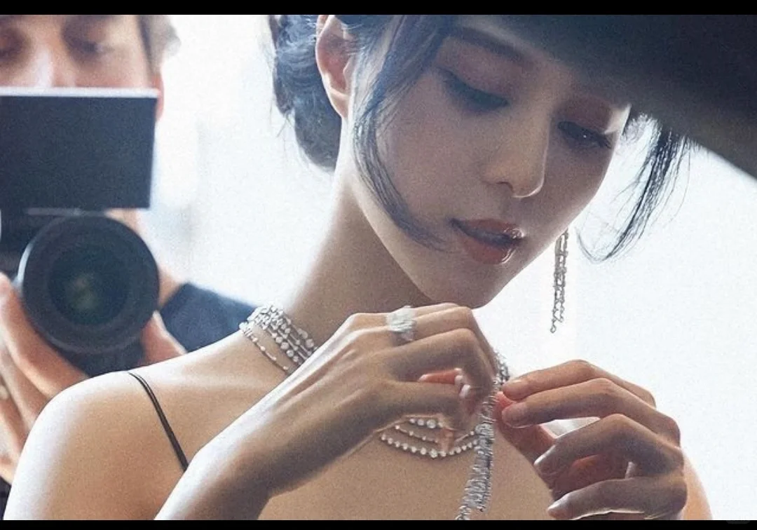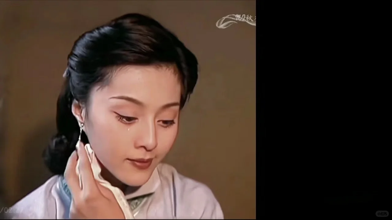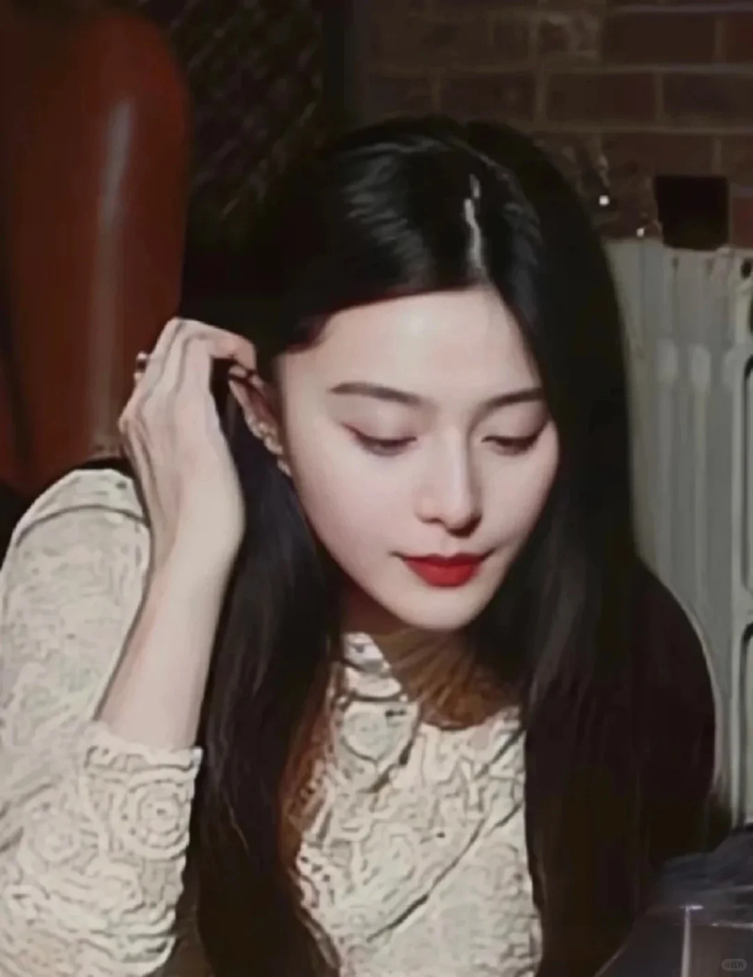 颔首垂眸如观众生,眉眼含情,鼻若琼瑶,口似樱桃,犹如一幅静谧的古典美人画