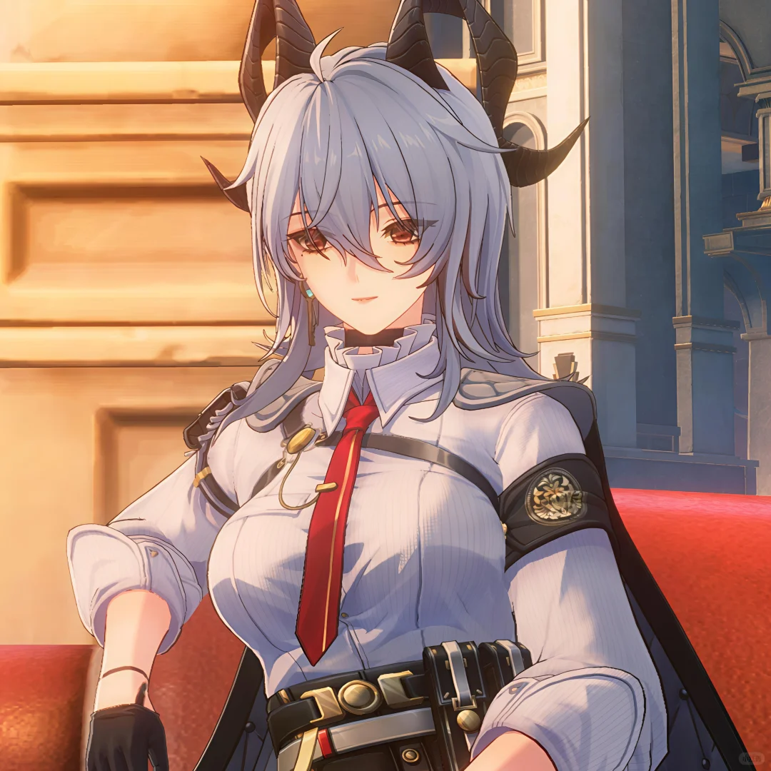 ②赞妮:白毛,红瞳,山羊角,头发蓬松带一点点凌乱感,再加上这双看向我们平淡又慵懒的眼睛,带着一丝天塌下来我都懒得管的感觉