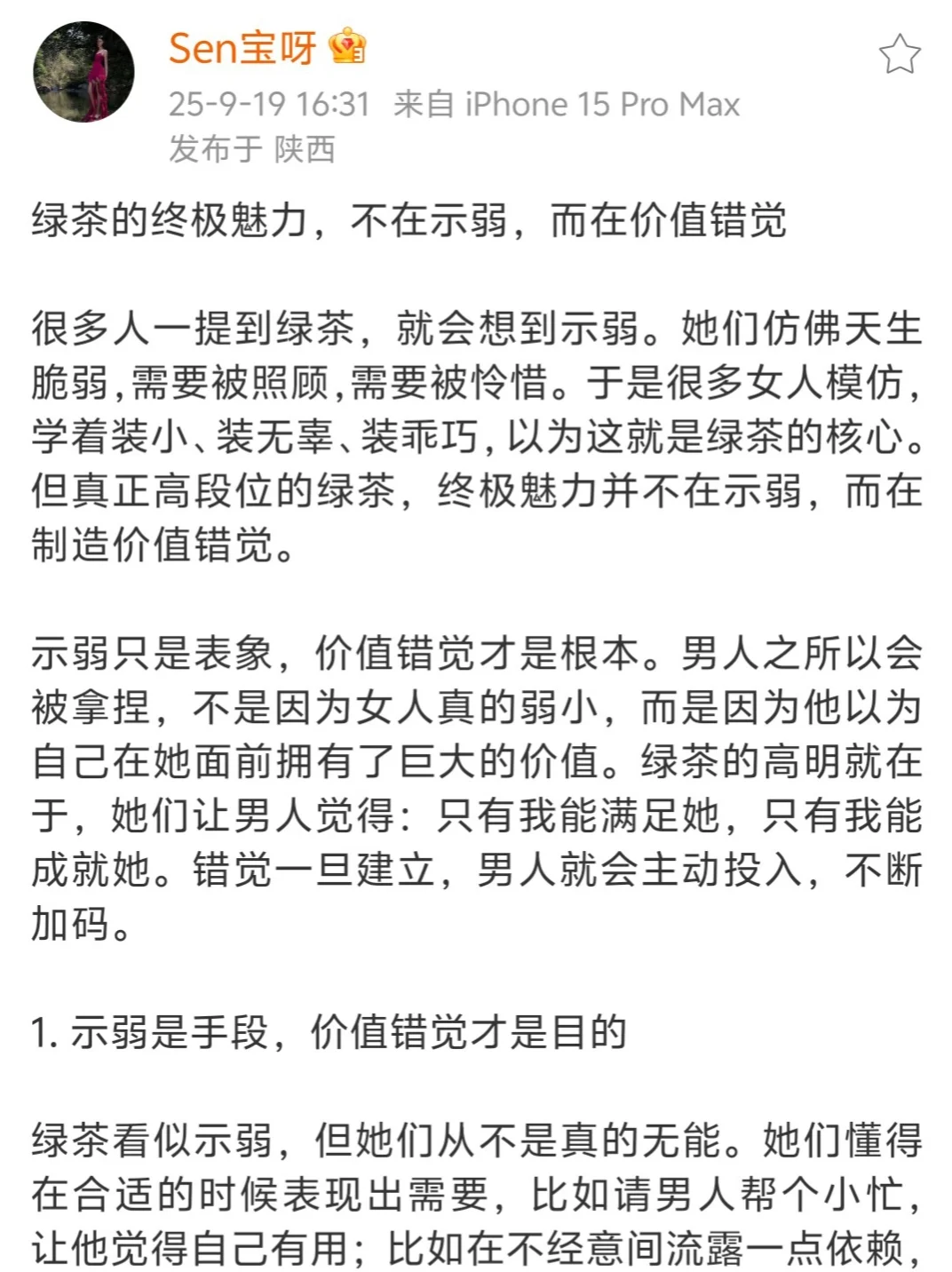 绿茶的终极魅力,不在示弱,而在价值错觉