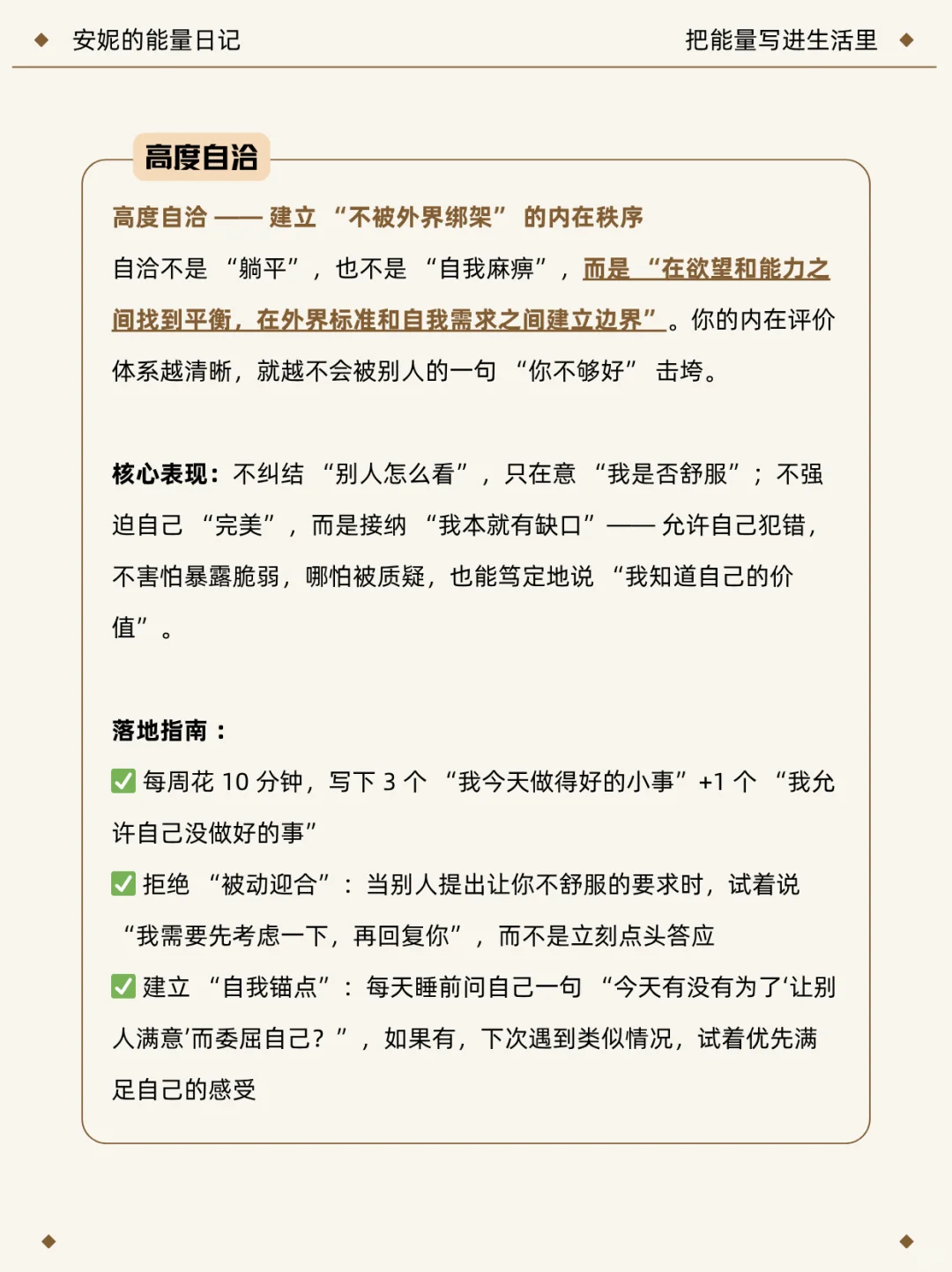 🔹 高度自洽:建立不被外界绑架的内在秩序