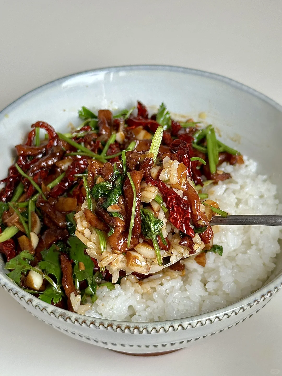 香辣肉丝盖饭🍛,做法简单,爆好吃😋