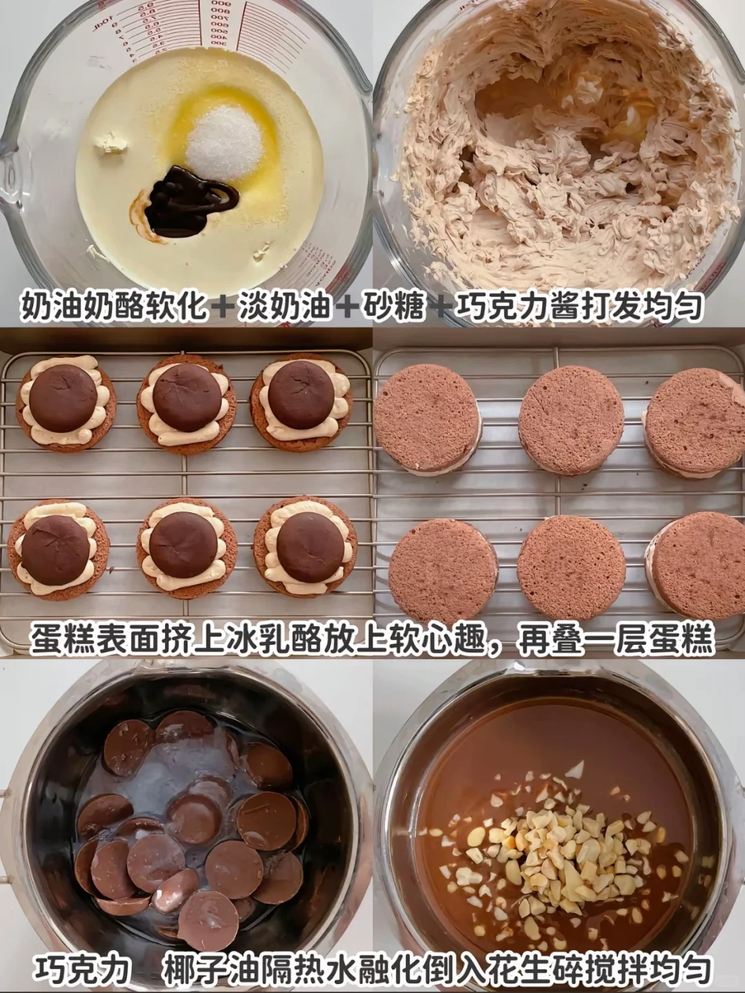 冰乳酪夹心食材:奶油奶酪70克|淡奶油180克|巧克力酱20克|砂糖20克|软心趣