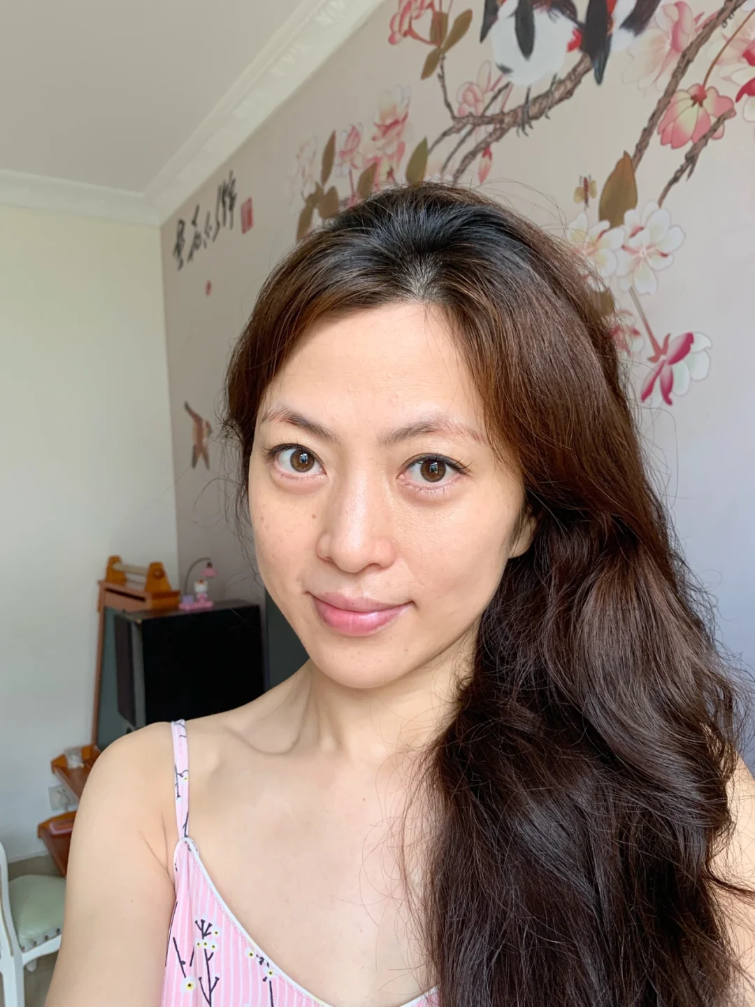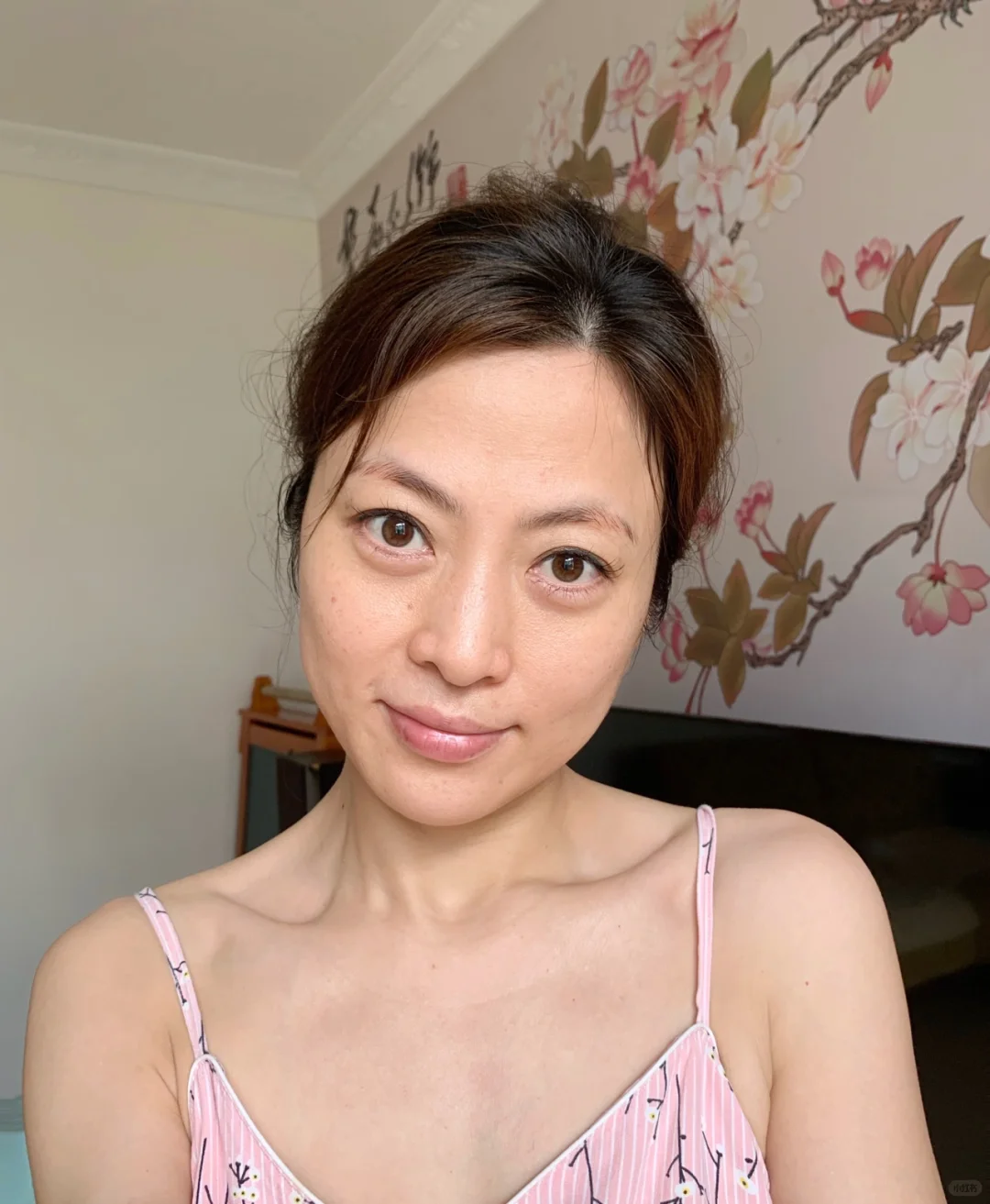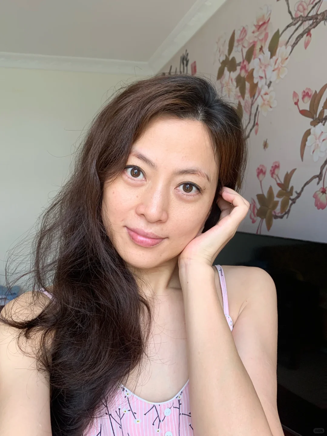 原图未P,苹果手机后置镜头像素太高,暗黄、法令纹、斑点都无处躲藏,但是这也是我真实的状态,我也坦然接受!