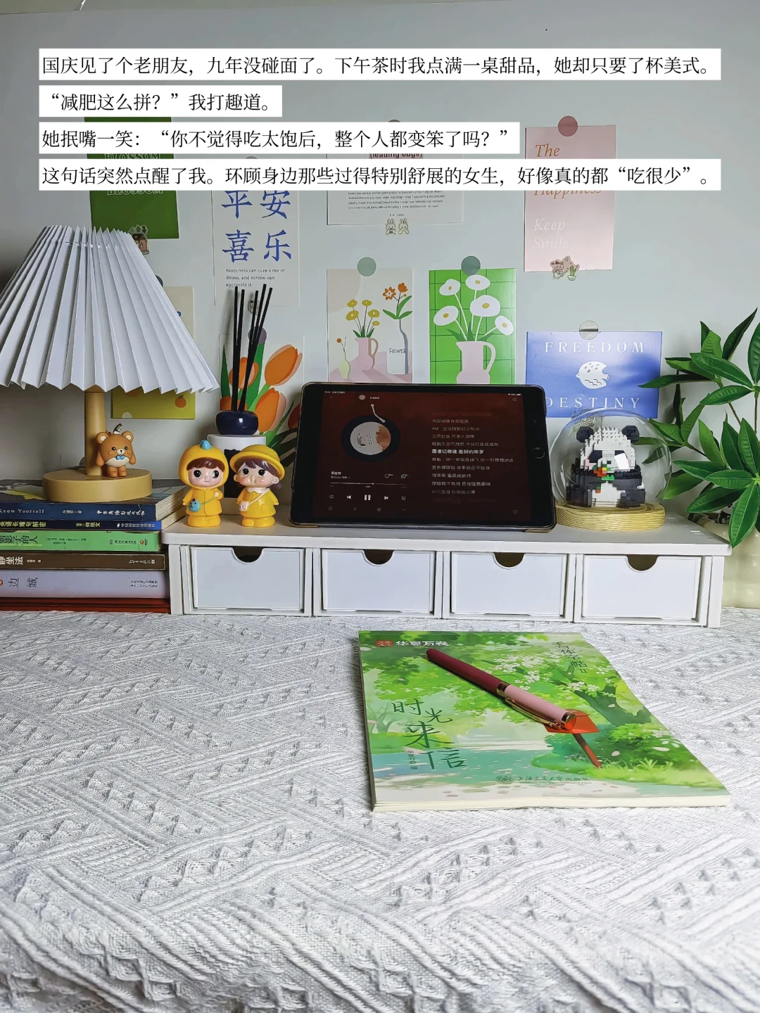 这句话突然点醒了我。环顾身边那些过得特别舒展的女生,好像真的都“吃很少”。