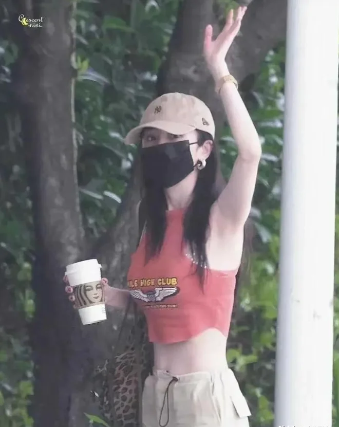 一件短款紧身无袖上衣,抬起手来腰肢大胆裸露,身材是真的好看。