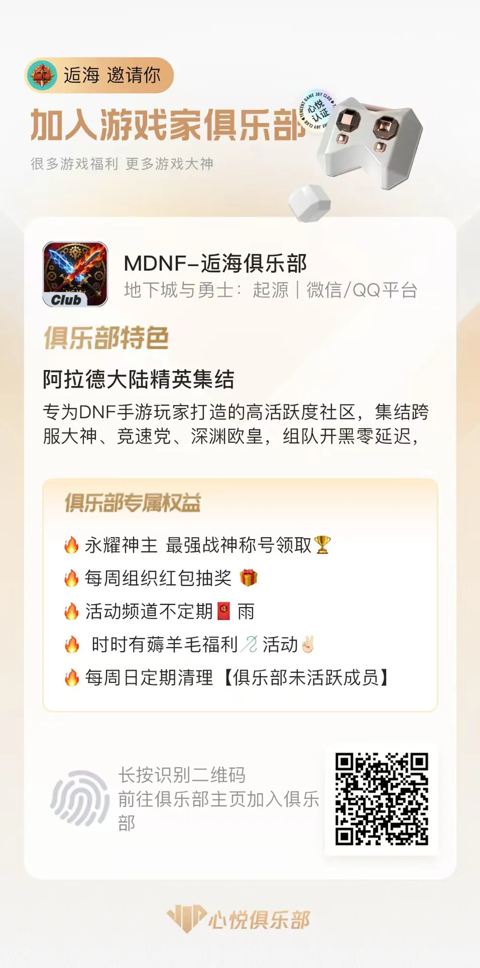 🔥报名活动开启,有机会抽最强战皇、圣魂初临、最强战神称号,还有机会抽取QB。分享到工会手气更佳!心动的勇士们,快来加入俱乐部,参与每周基金、打卡抽奖等福利,赢取Q币和称号,成为城中最靓的仔!