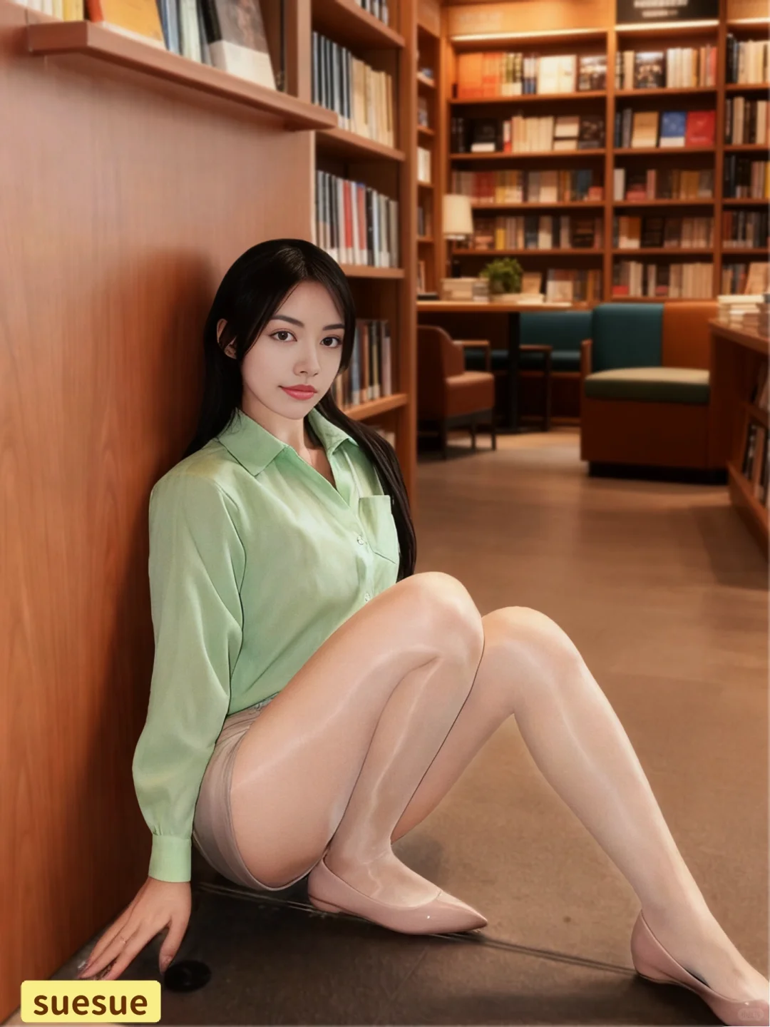 ◦ 选择原因:尖头设计能在视觉上延伸腿部线条,平底则保证了在图书馆长时间走动或站立的舒适度。裸色和浅粉色非常柔和,与整体色调呼应,强化温柔感