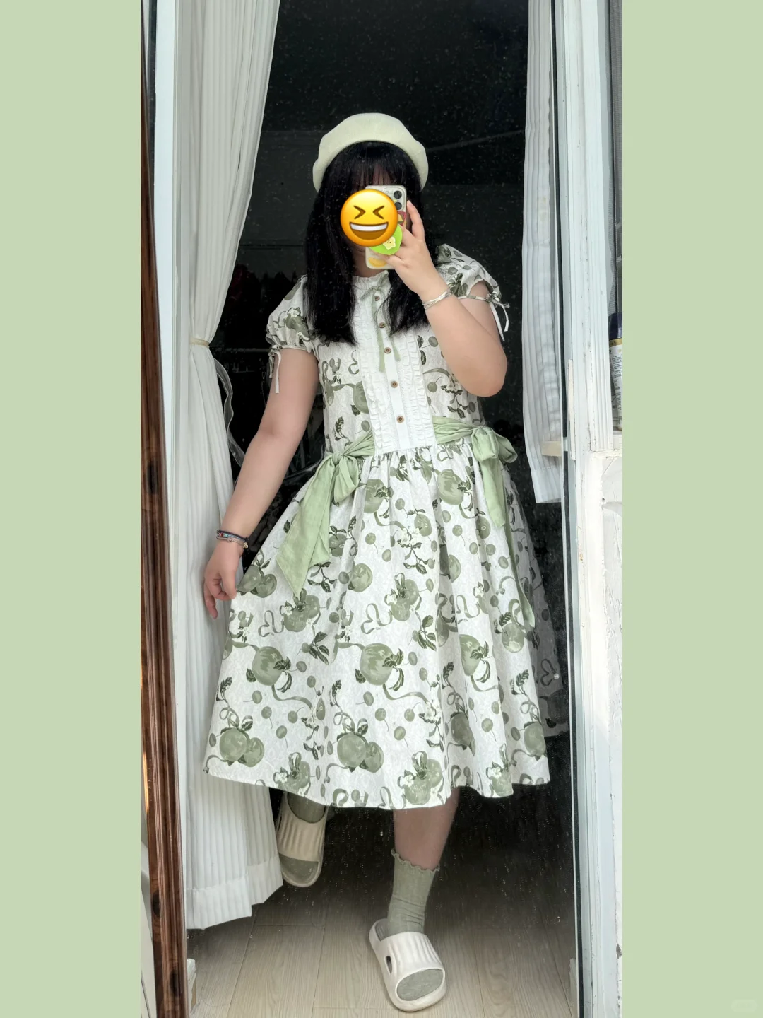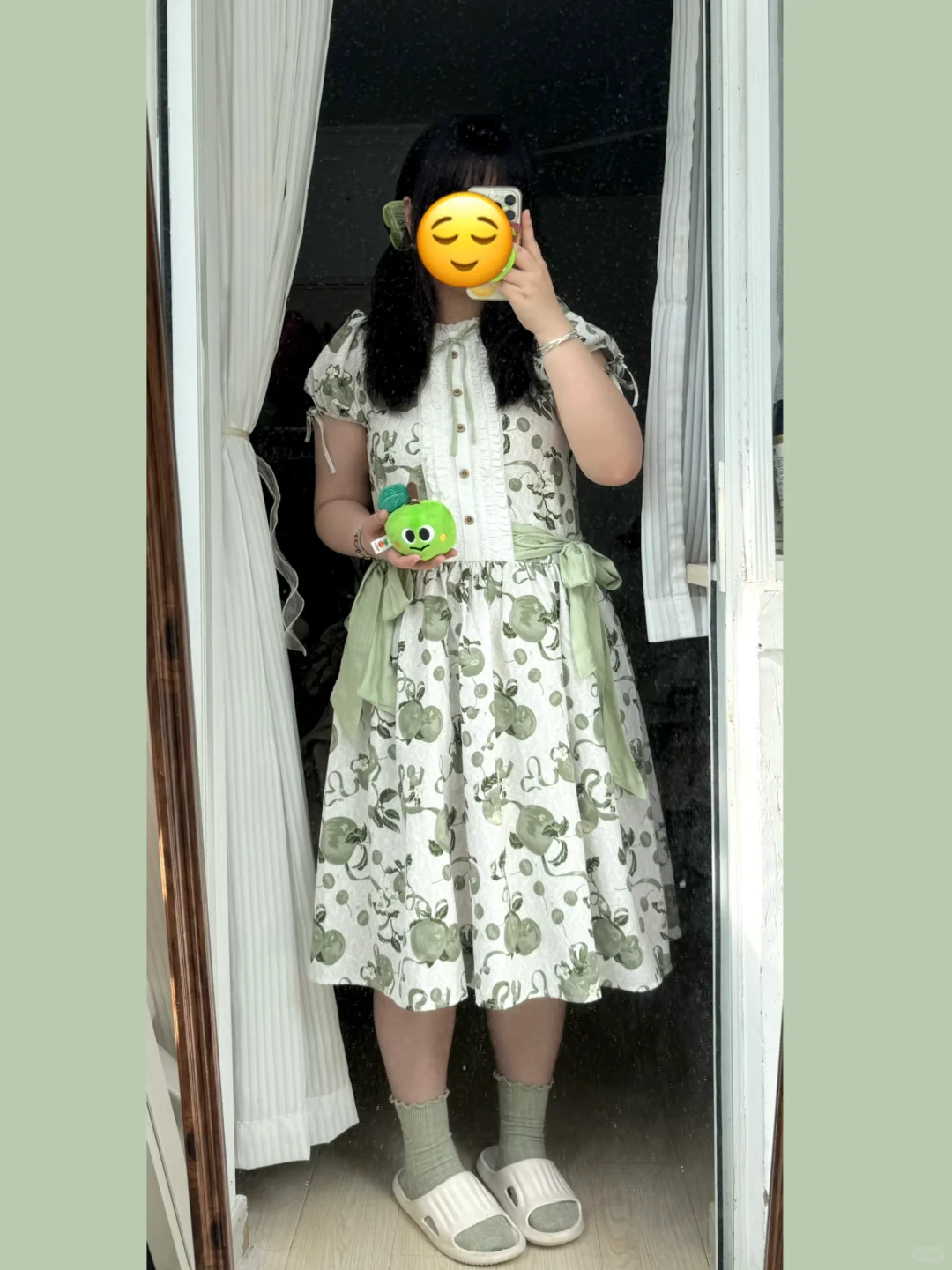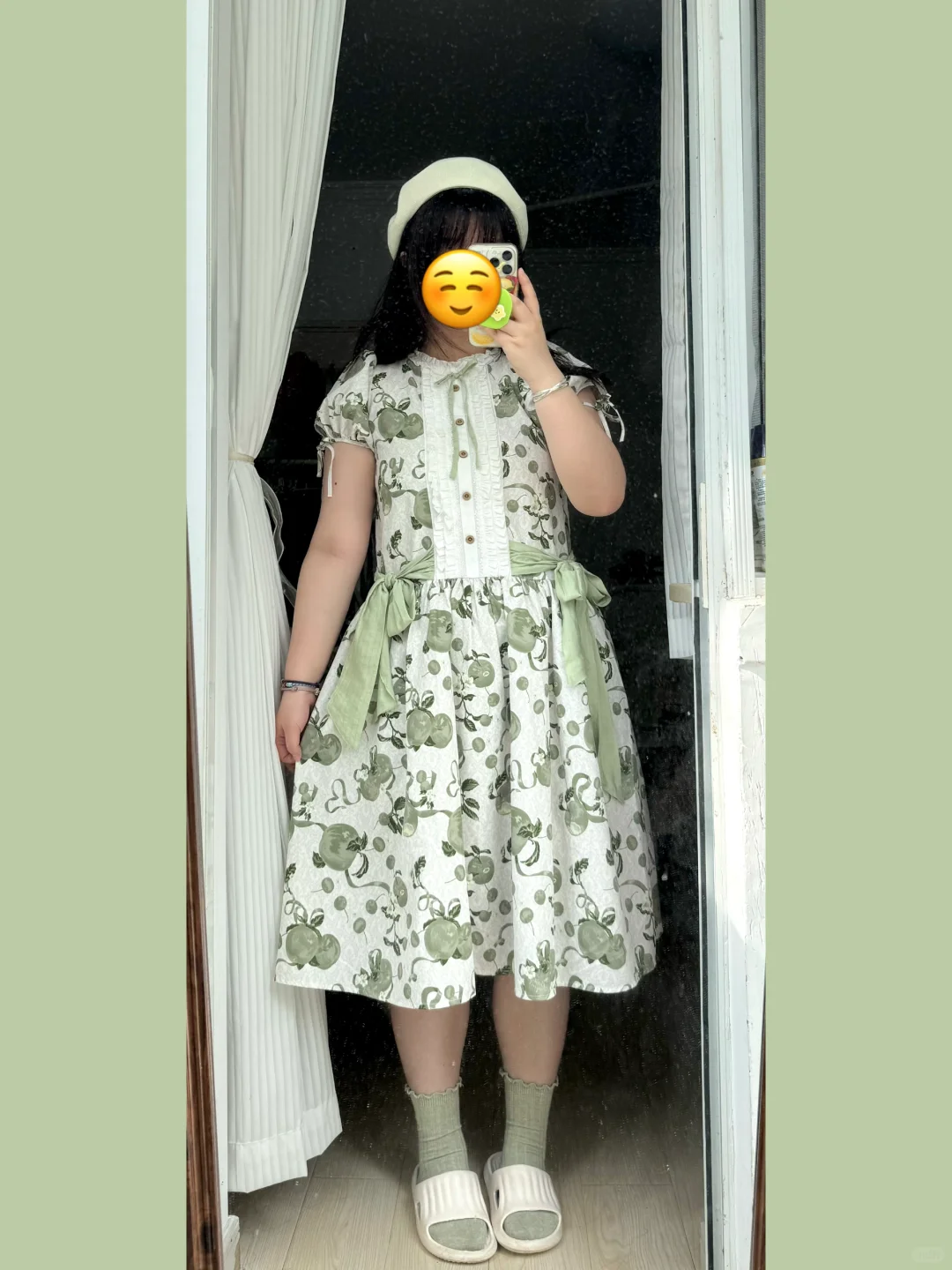 榛果可可花束,林檎之森短款op,浅绿L码,168cm72kg穿着宽松。图上均为无撑穿着,后附尺码表。榛果可可你有这么高速的发货速度进入中国,补完款第二天就收到了,好像在做梦🥹