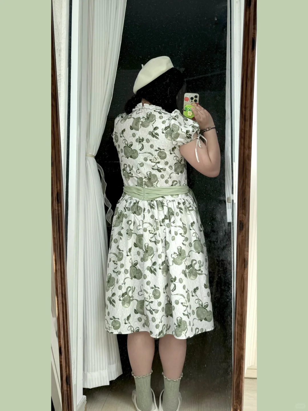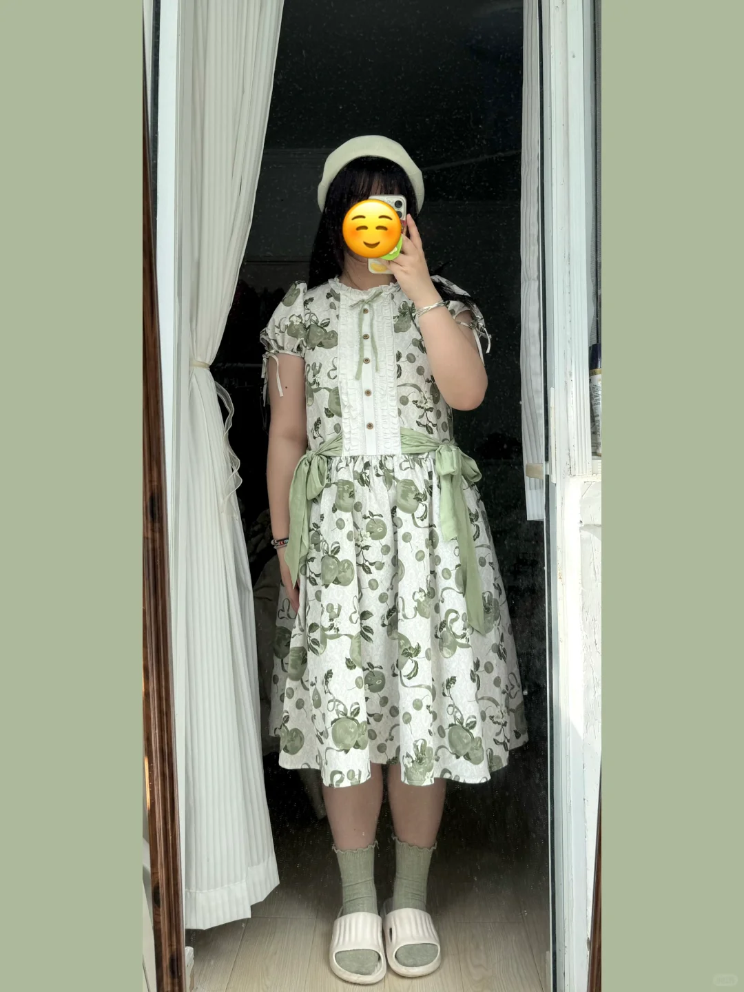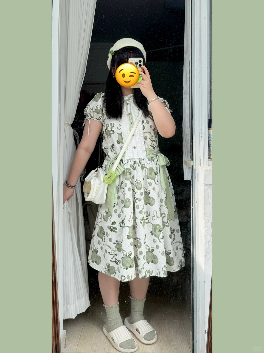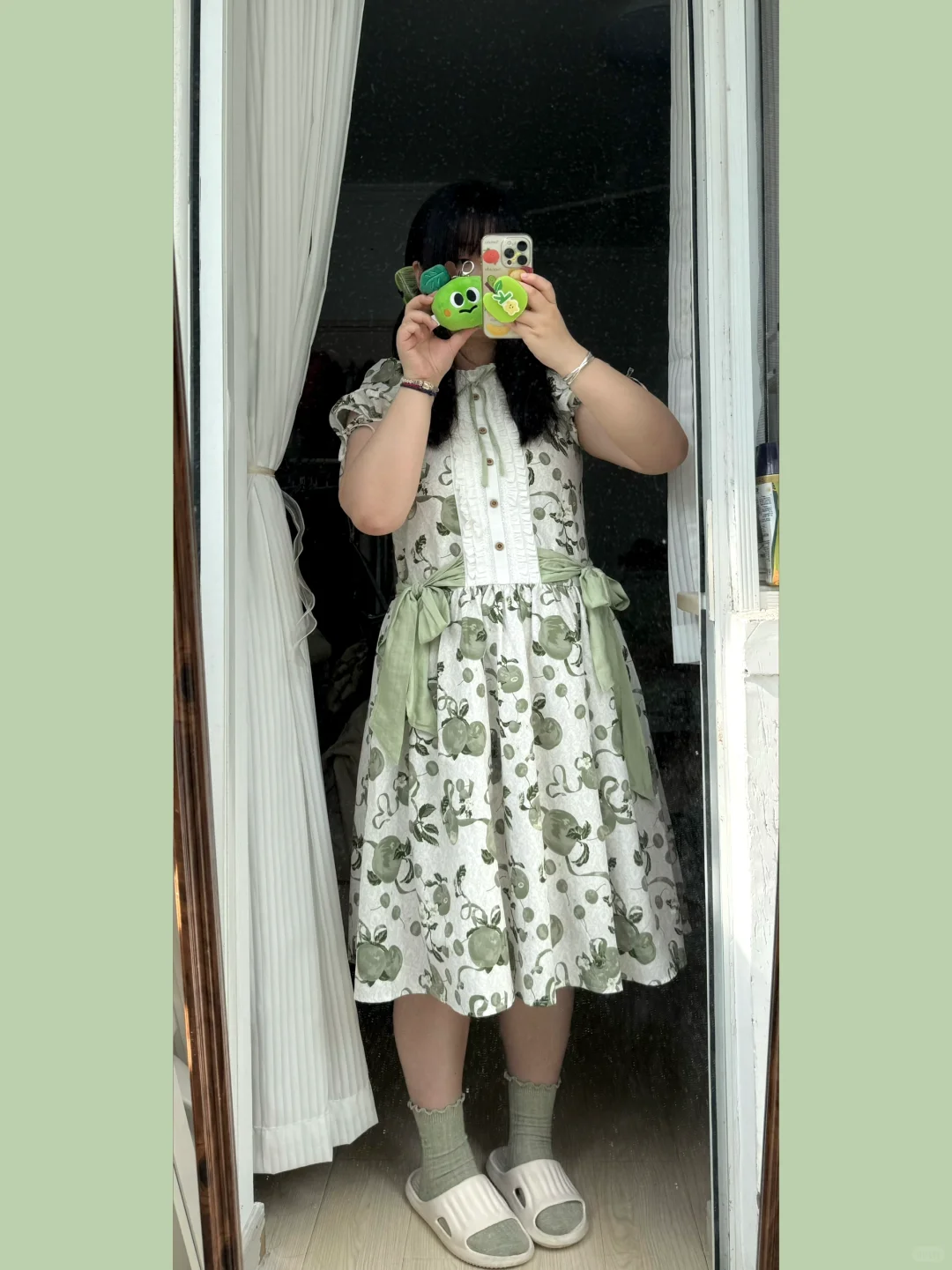 榛果可可花束,林檎之森短款op,浅绿L码,168cm72kg穿着宽松。图上均为无撑穿着,后附尺码表。榛果可可你有这么高速的发货速度进入中国,补完款第二天就收到了,好像在做梦🥹