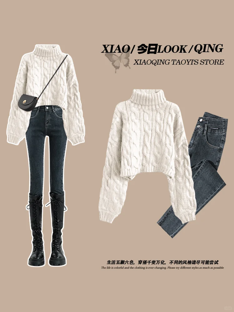 Look4⃣:白色毛衣+蓝灰牛仔裤