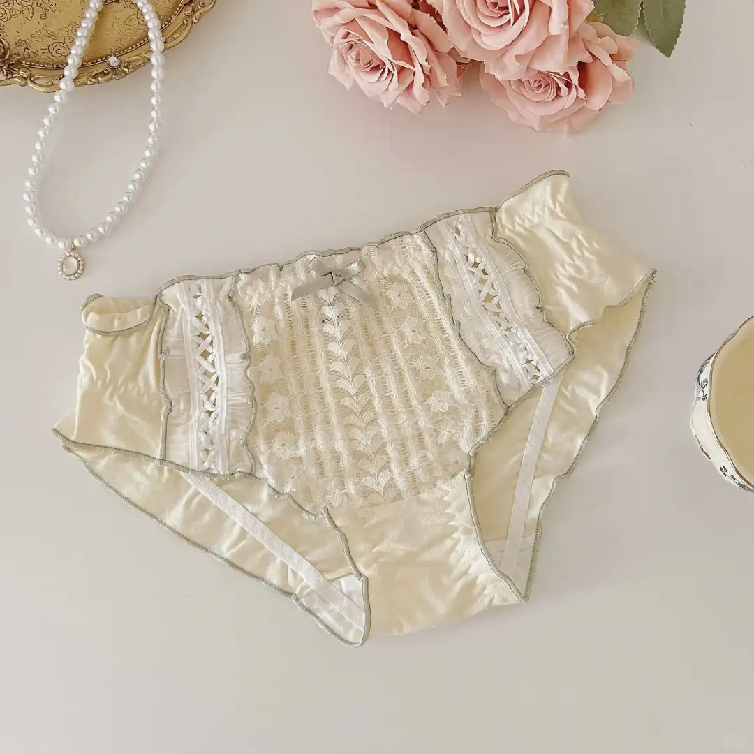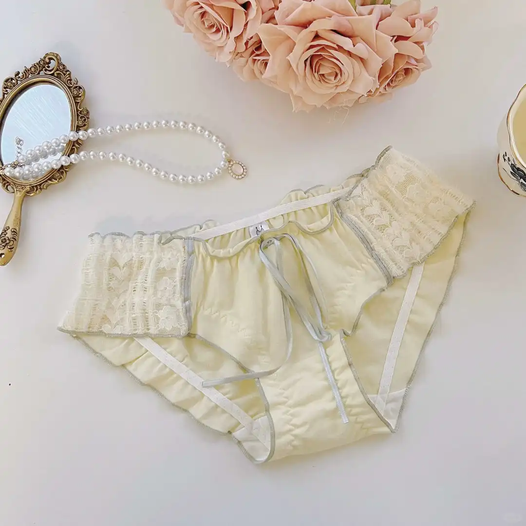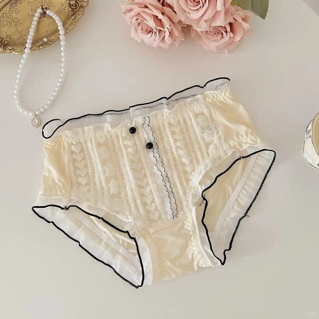 日系风治愈系爱心毛毛绒蕾丝拼接少女内内