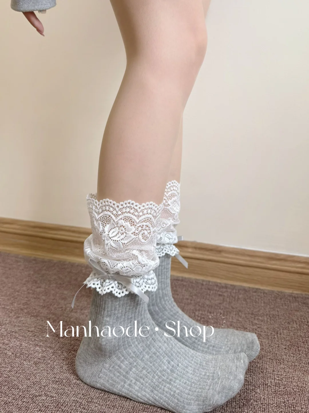 早秋的法式少女感~🎀🎀蝴蝶结蕾丝袜超美‼️