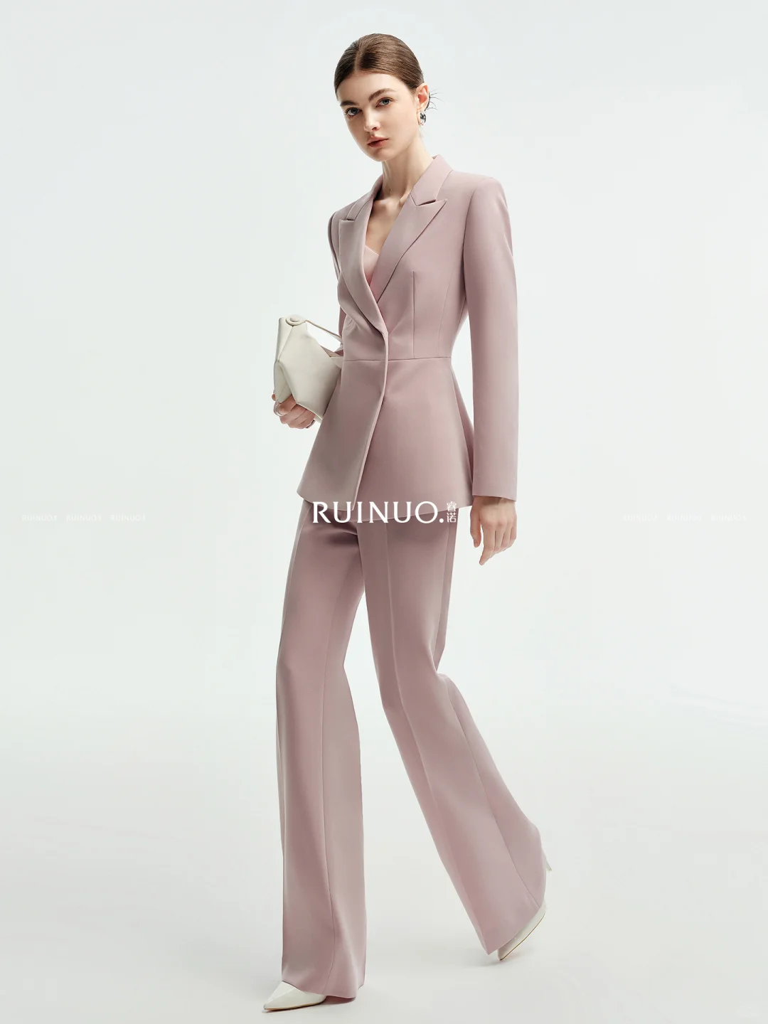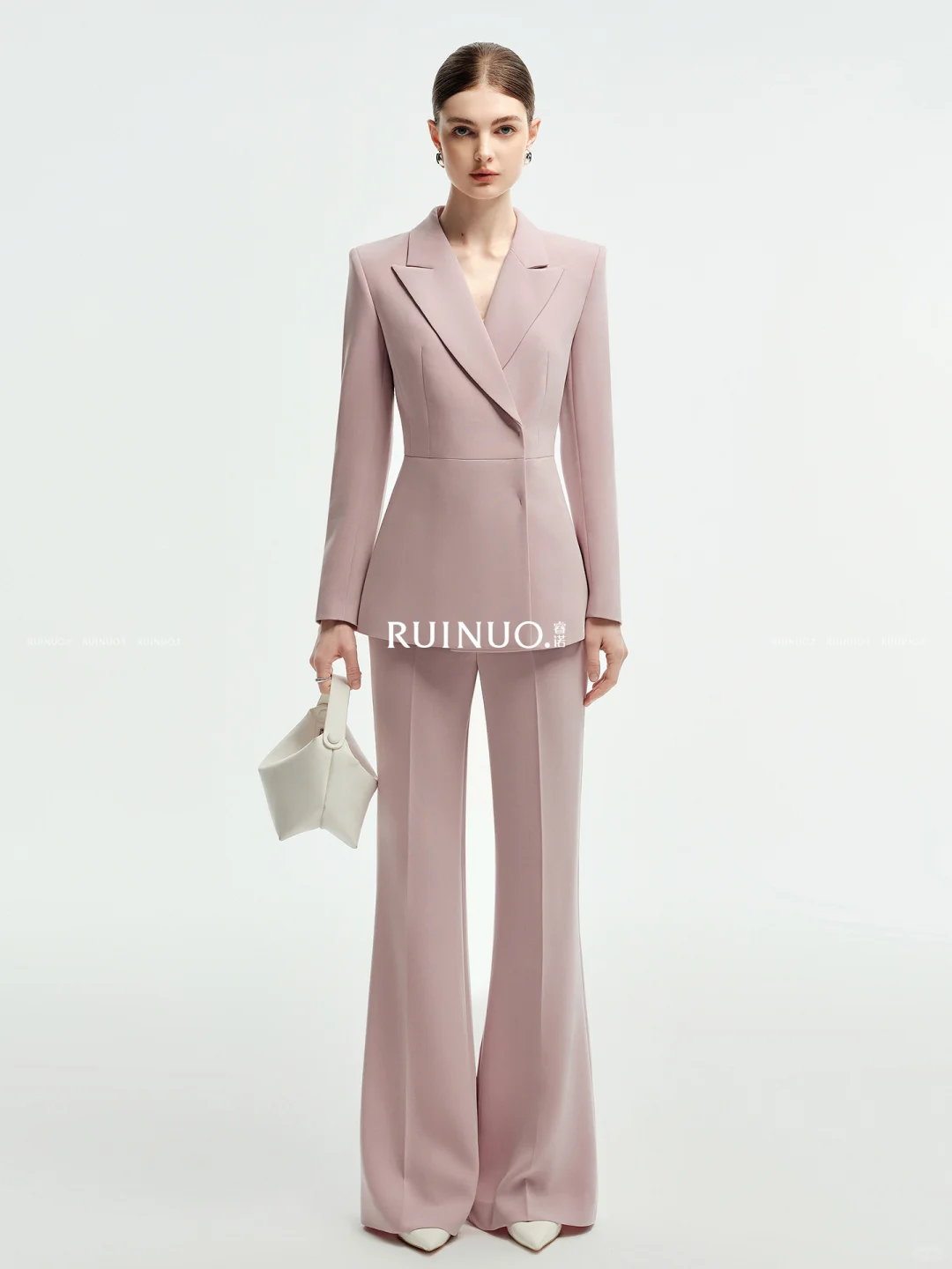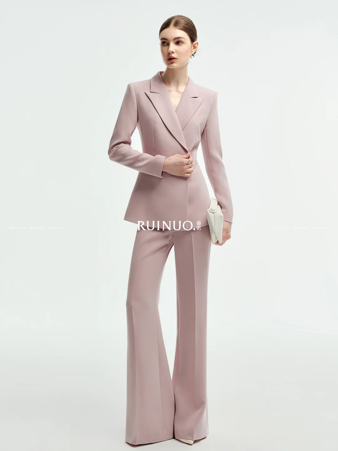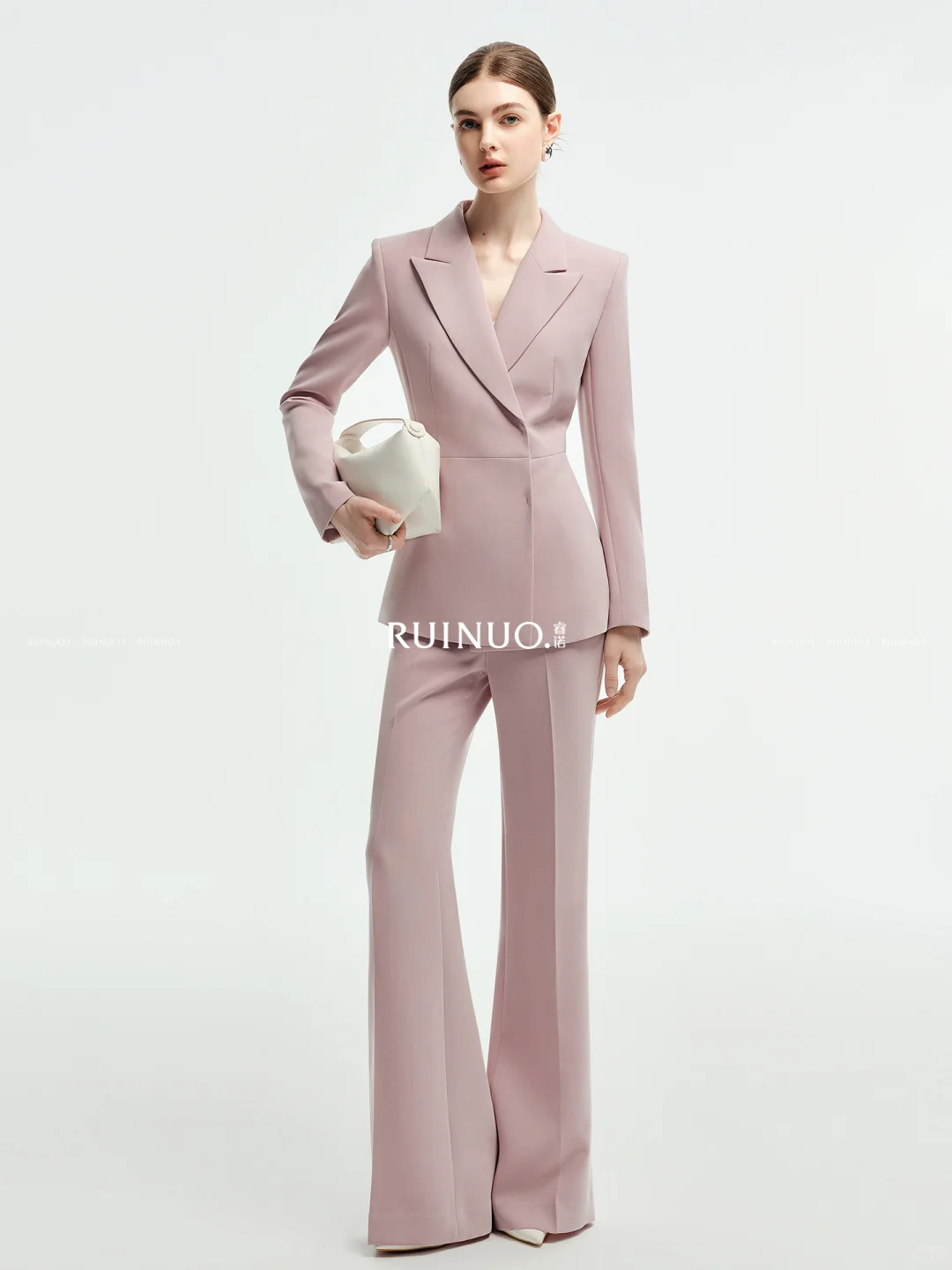 粉色选对超显贵!这套西装微喇裤套装,把艺考所需的正式感与女神范捏得刚好。