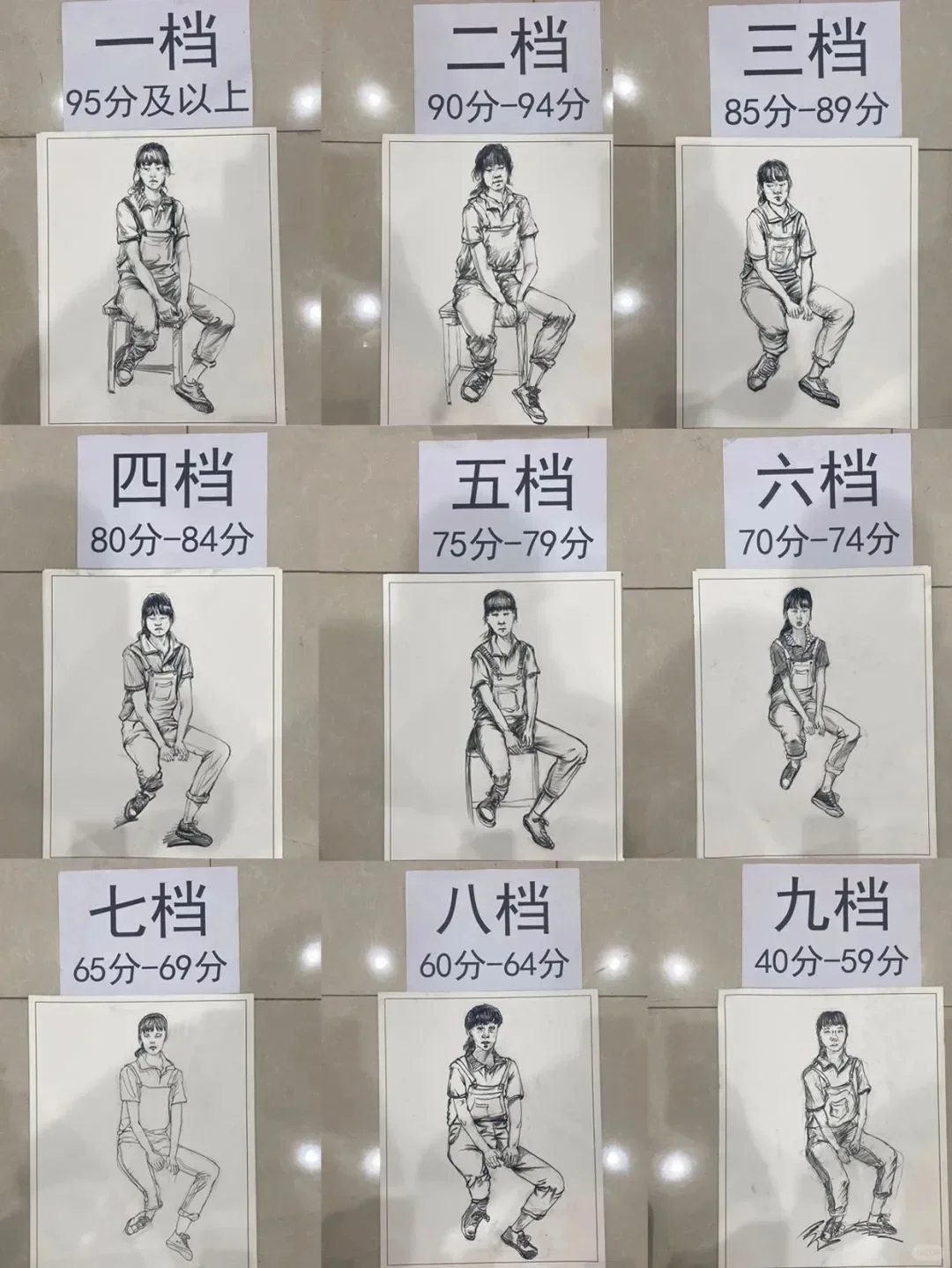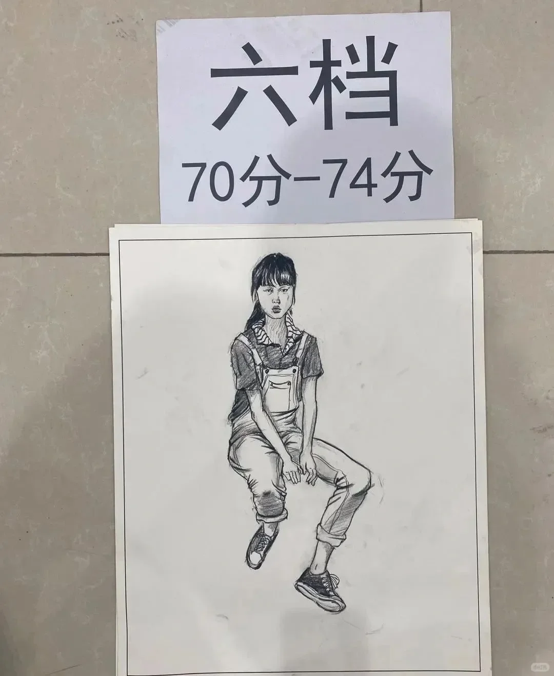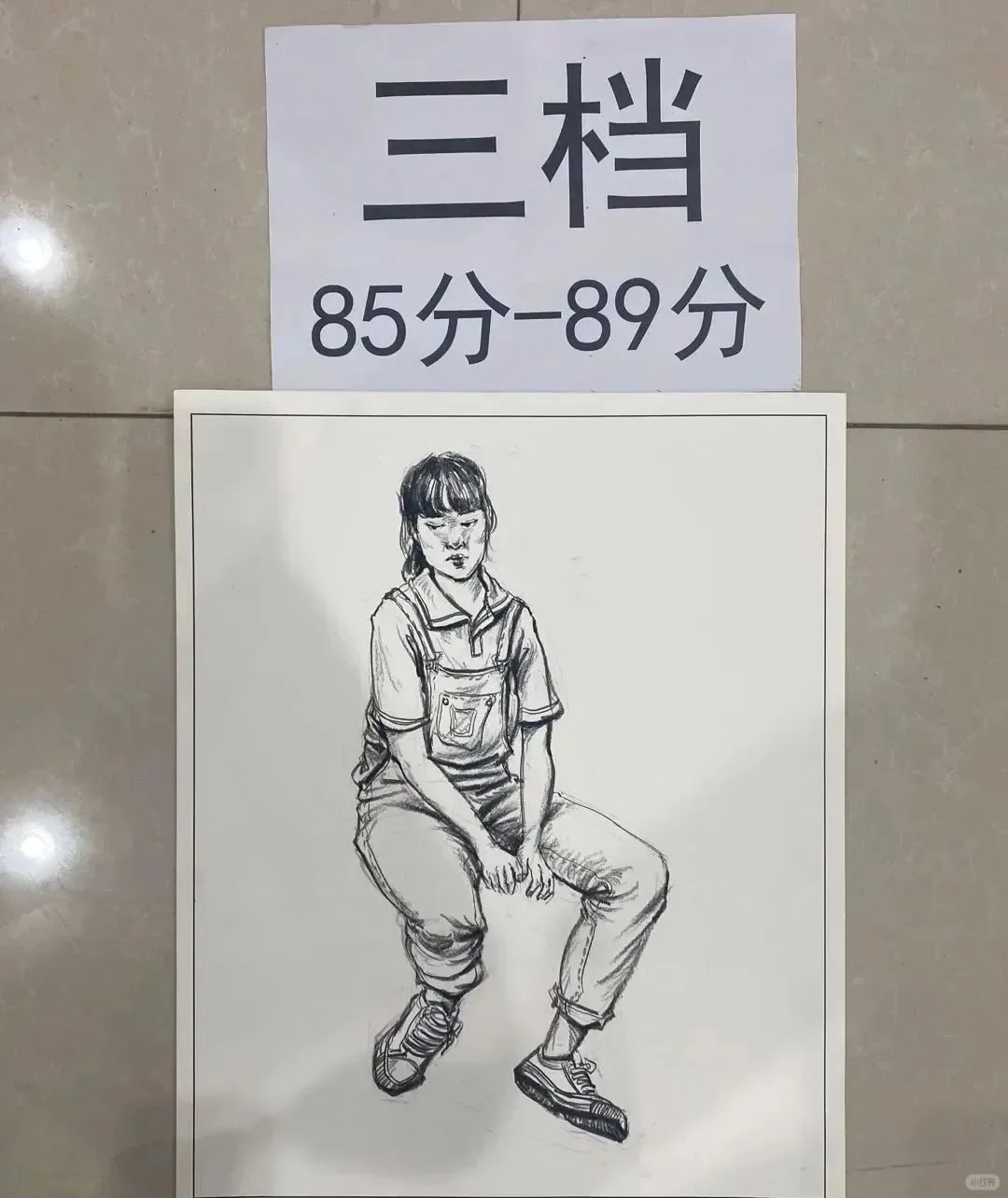 3档:120分-124分。 ♦️100分制则是80~84分。 点评:构图完整,比例结构相对准确,动态相对自然,头手脚刻画基本到位,用笔用线流畅肯定基本连贯,整体画面完整。