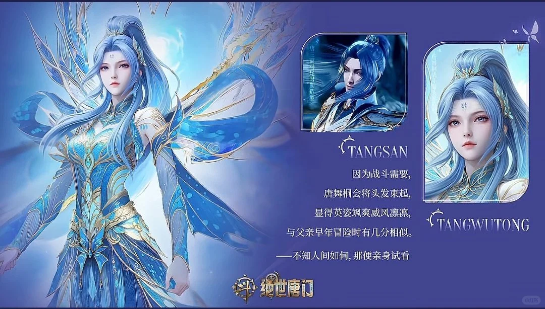 💡和老爹唐三一样,高马尾束发;