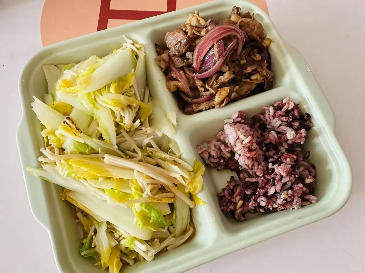 🍱午饭:洋葱30羊肉120+娃娃菜160金针菇60+杂粮饭60