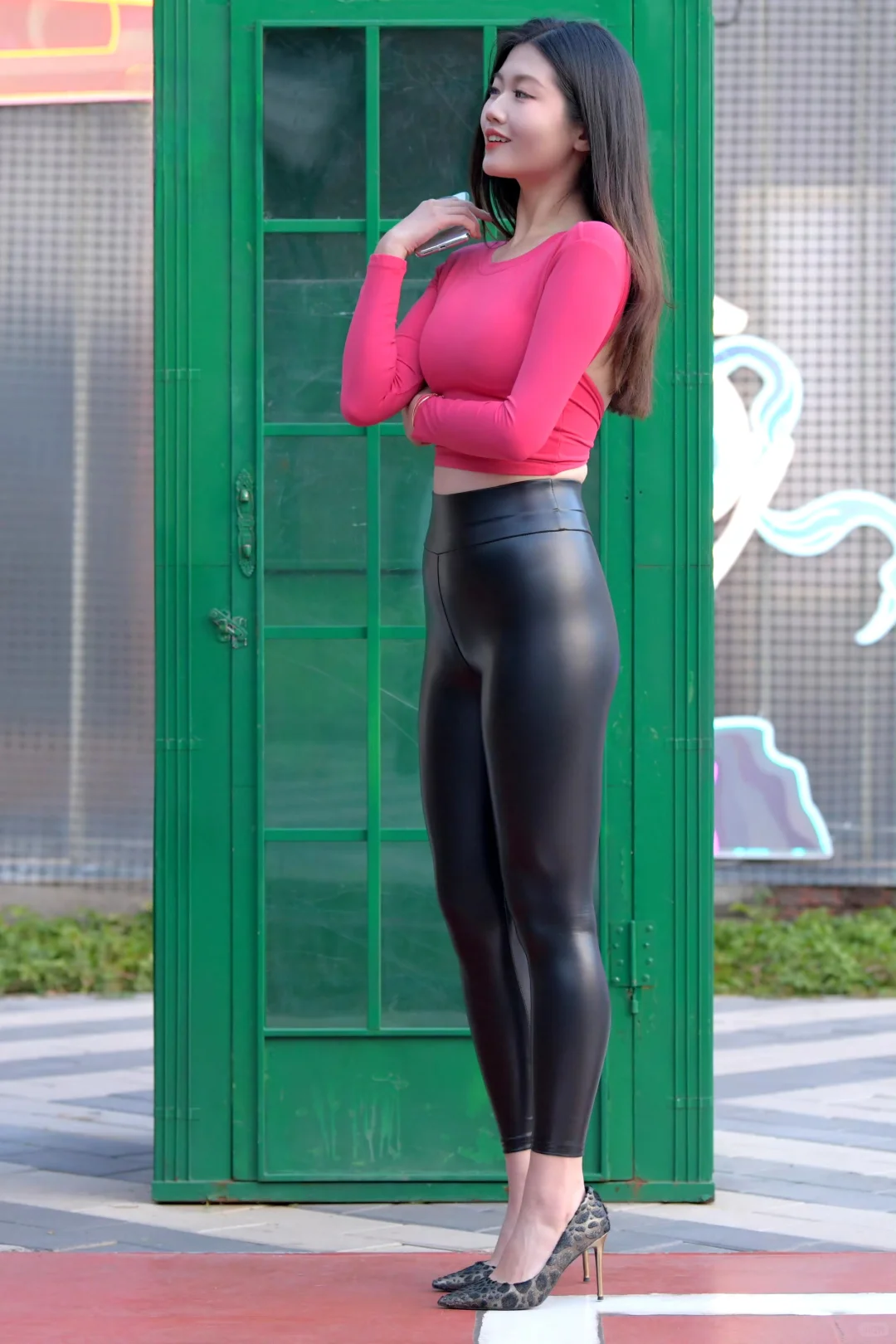 街拍佳人,丰腴美腿皮裤秀!